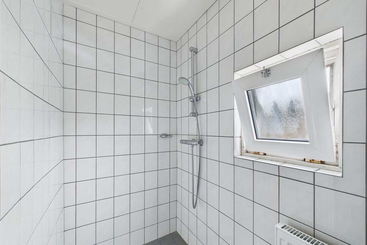 Overloop met luik naar de zolder (bereikbaar via een schuiftrap), vaste bergkast, 3 slaapkamers met vaste kasten en een nette badkamer met wastafel en douche.