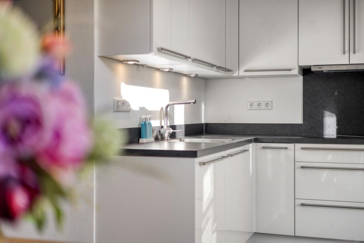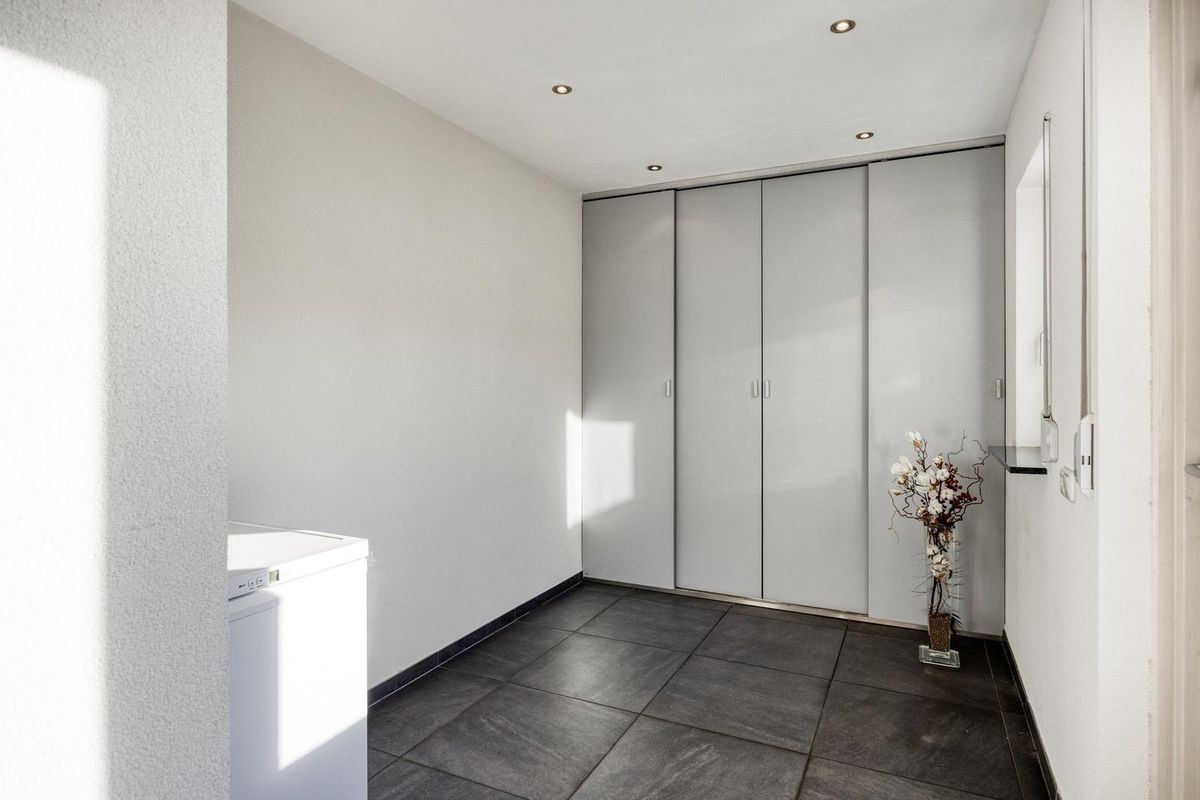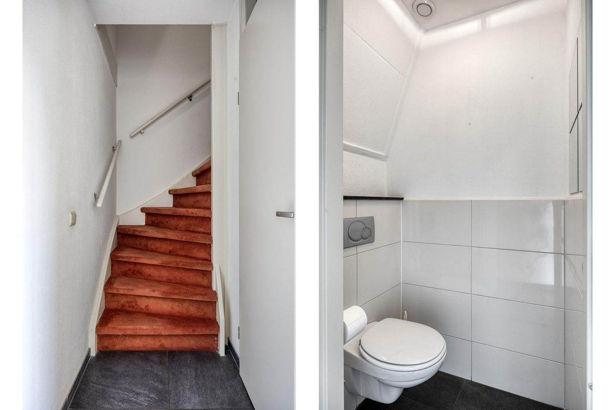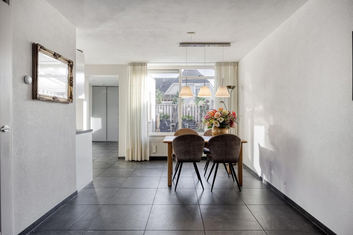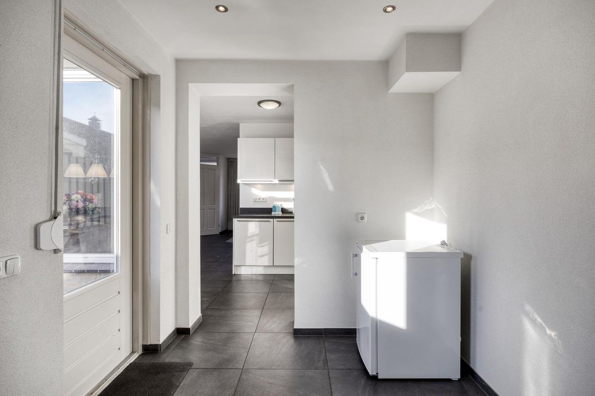 Bij binnenkomst valt direct de lichte en sfeervolle woonkamer op, waar grote ramen zorgen voor een prettige hoeveelheid daglicht. De open keuken, vernieuwd in 2018, is een stijlvolle en functionele ruimte met inbouwapparatuur zoals een 4-pits inductiekookplaat met afzuigkap, combi-oven, vaatwasser en koelkast. De praktische bijkeuken met inbouwkast en witgoedaansluitingen biedt extra gemak in het dagelijks gebruik. De begane grond is volledig voorzien van vloerverwarming en afgewerkt met een nette tegelvloer, spachtelputz op de wanden en spuit-/schuurwerk op de plafonds. Via het tussenportaal met toiletruimte bereik je de eerste verdieping.
