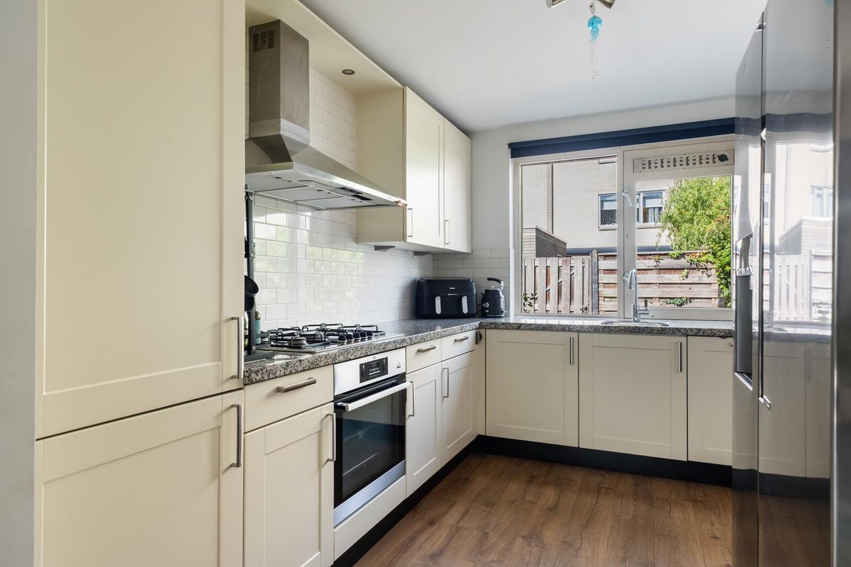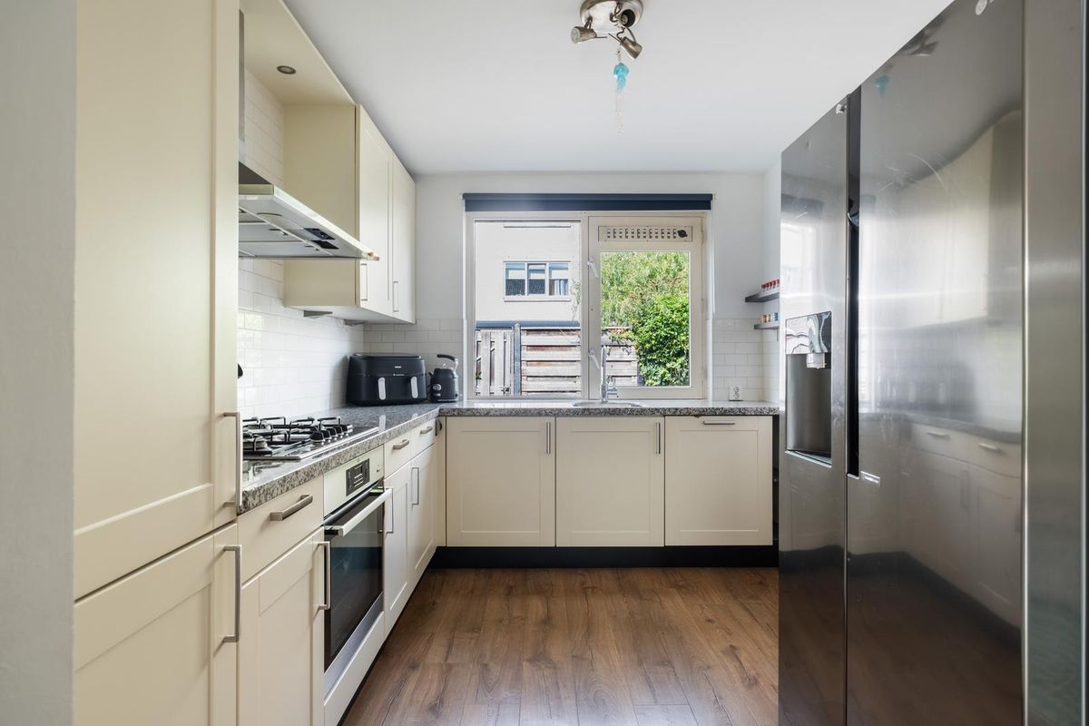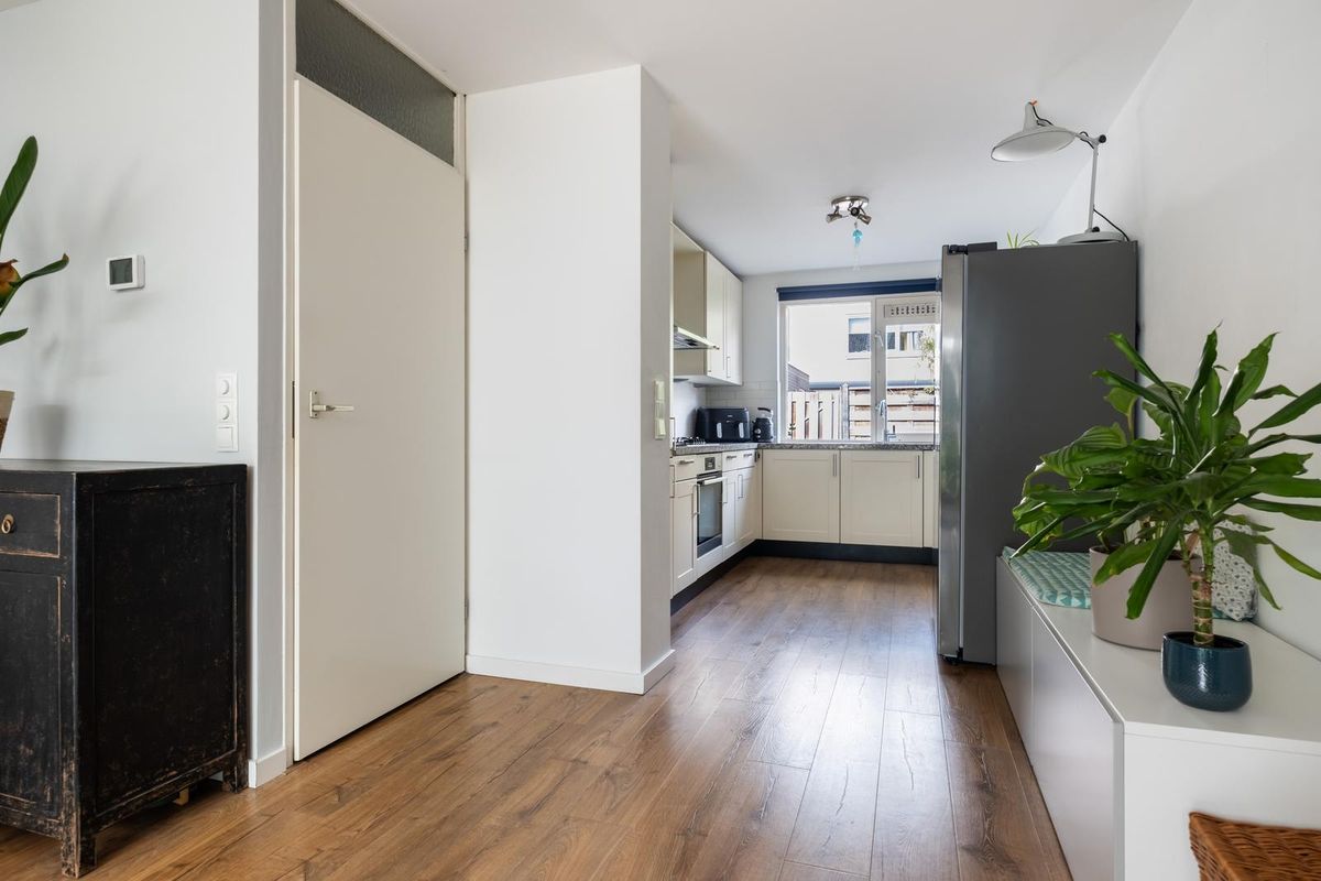 Bij binnenkomst in de hal tref je een praktische trapkast, een modern separaat toilet en de toegang tot de woonkamer. De doorzonwoonkamer is een heerlijk lichte en uitnodigende ruimte. Dankzij de uitbouw (2020) met dakraam geniet je hier volop van natuurlijk daglicht en kan je zo nou en dan ook vanaf je bank de volle maan bewonderen. Het dakraam is voorzien van een zonnewering aan de buitenkant waarmee je op warme dagen de warmte gemakkelijk buiten kan houden. Via de aluminium schuifpui stap je zo de zonnige achtertuin op het zuiden in. Deze sfeervolle tuin is fraai aangelegd met een houten vlonder en beschikt over een externe berging met overkapping, strak afgewerkt met houten planken. De royale open keuken sluit mooi aan op de woonkamer. De gehele begane grond is voorzien van comfortabele vloerverwarming.