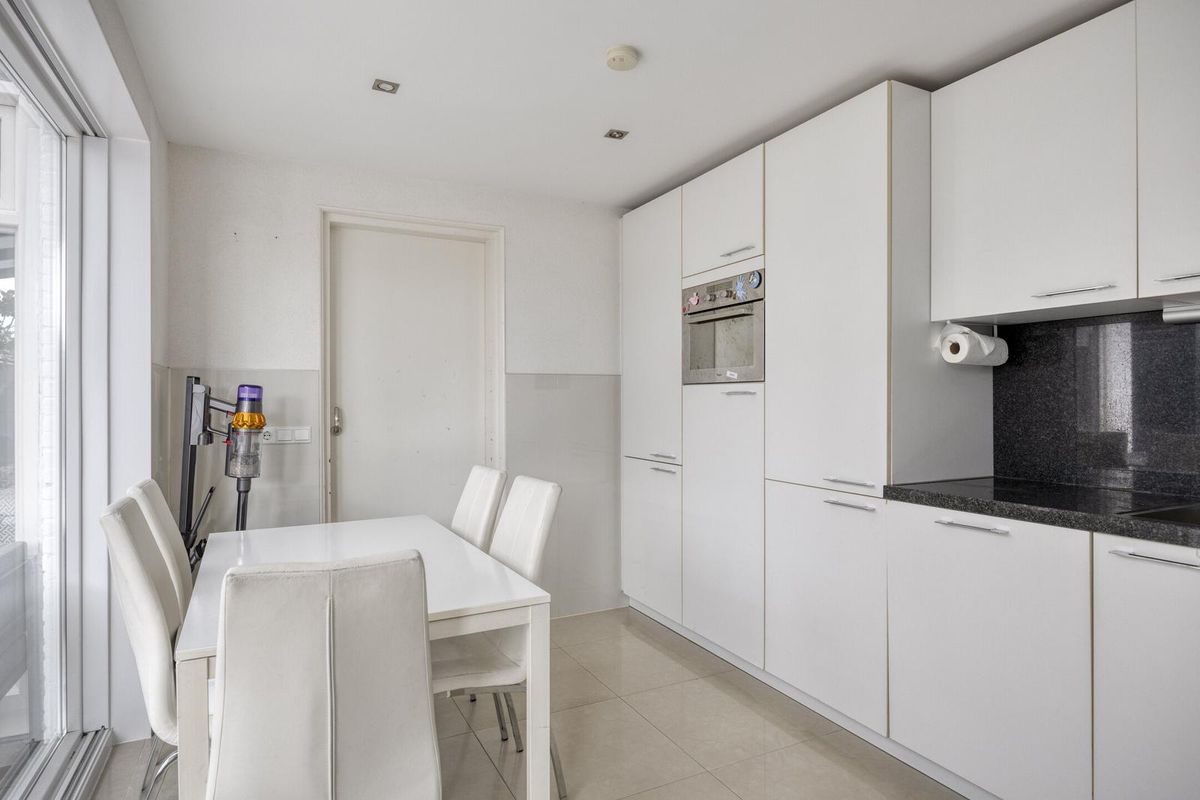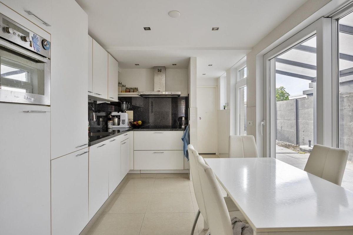 De moderne keuken, grenzend aan de woonkamer, is voorzien van witte kastjes en luxe inbouwapparatuur zoals een koelkast, vriezer, vaatwasser en kookplaat. Ideaal voor de thuiskok!