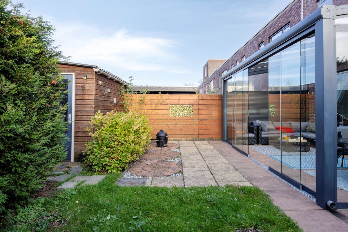 De ruime achtertuin ligt op het noordwesten en is voorzien van een royale serre. De zijtuin is bereikbaar vanuit de achtertuin en ligt op het zuidwesten. Zo geniet je de hele dag van zon én beschutting.