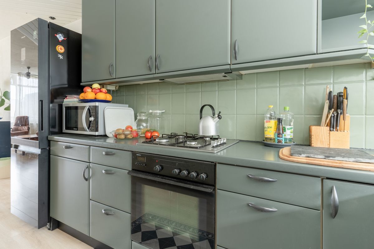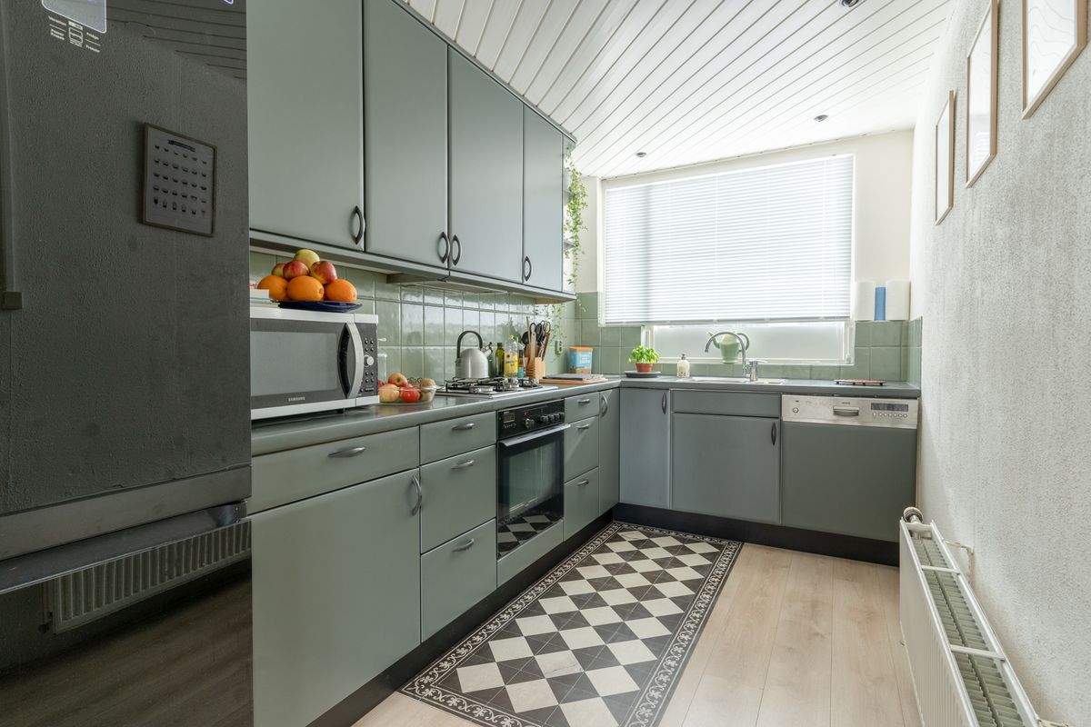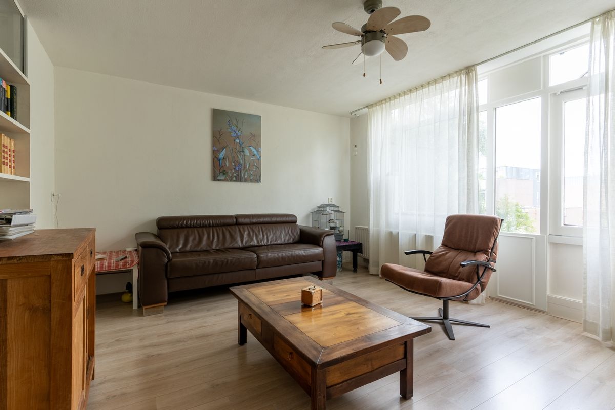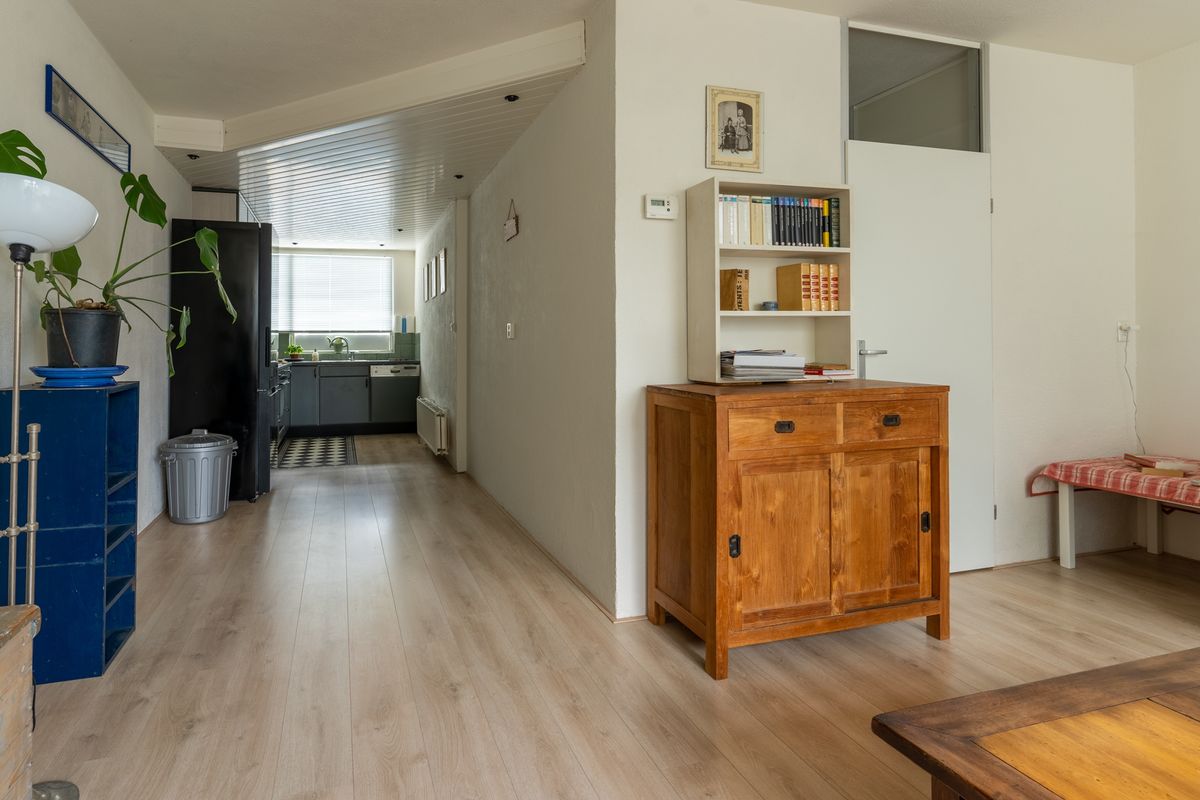 overloop, bergkast, modern toilet met fonteintje, c.v. kast en toegang tot de slaapkamer. Lichte woonkamer met vrij uitzicht en aansluitend de open keuken in hoekopstelling.