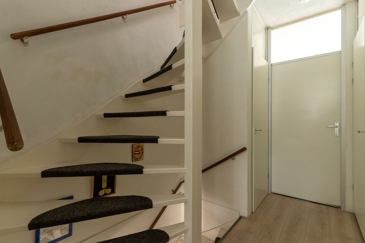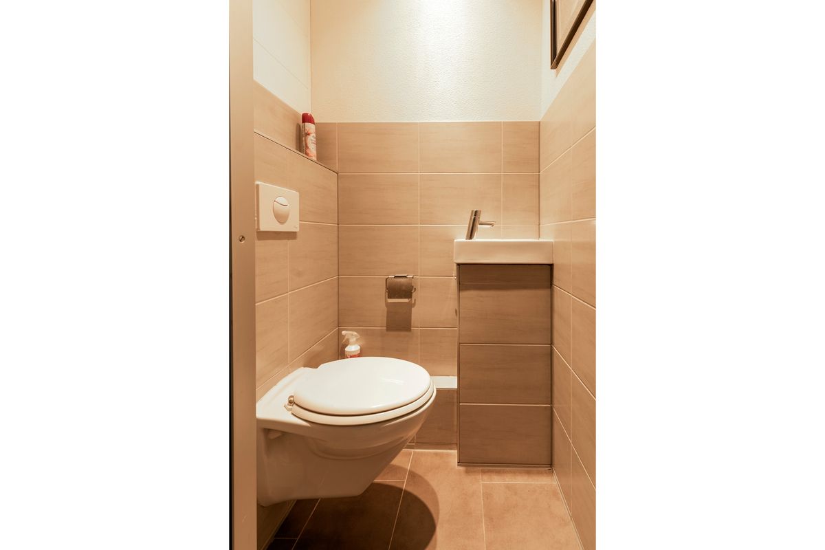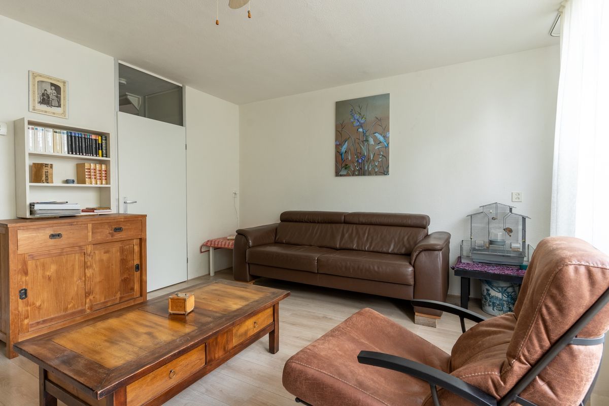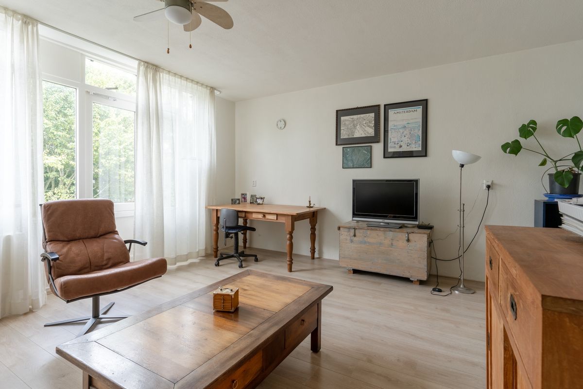 overloop, bergkast, modern toilet met fonteintje, c.v. kast en toegang tot de slaapkamer. Lichte woonkamer met vrij uitzicht en aansluitend de open keuken in hoekopstelling.