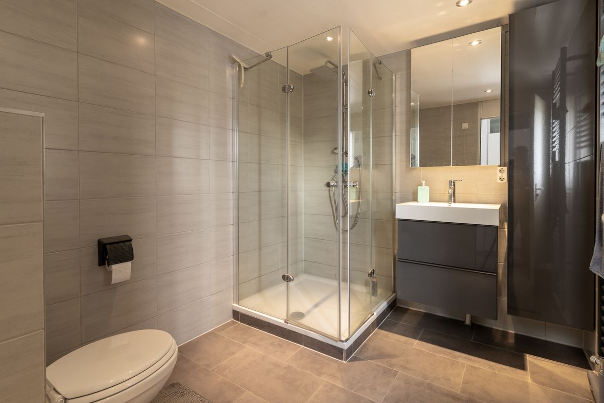 overloop met bergkast, praktische werkkamer/berging, balkon gelegen op het zuiden, 2 ruime slaapkamers en een moderne badkamer voorzien van een douchecabine, wastafelmeubel en tweede toilet.