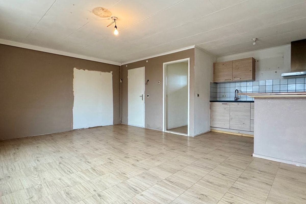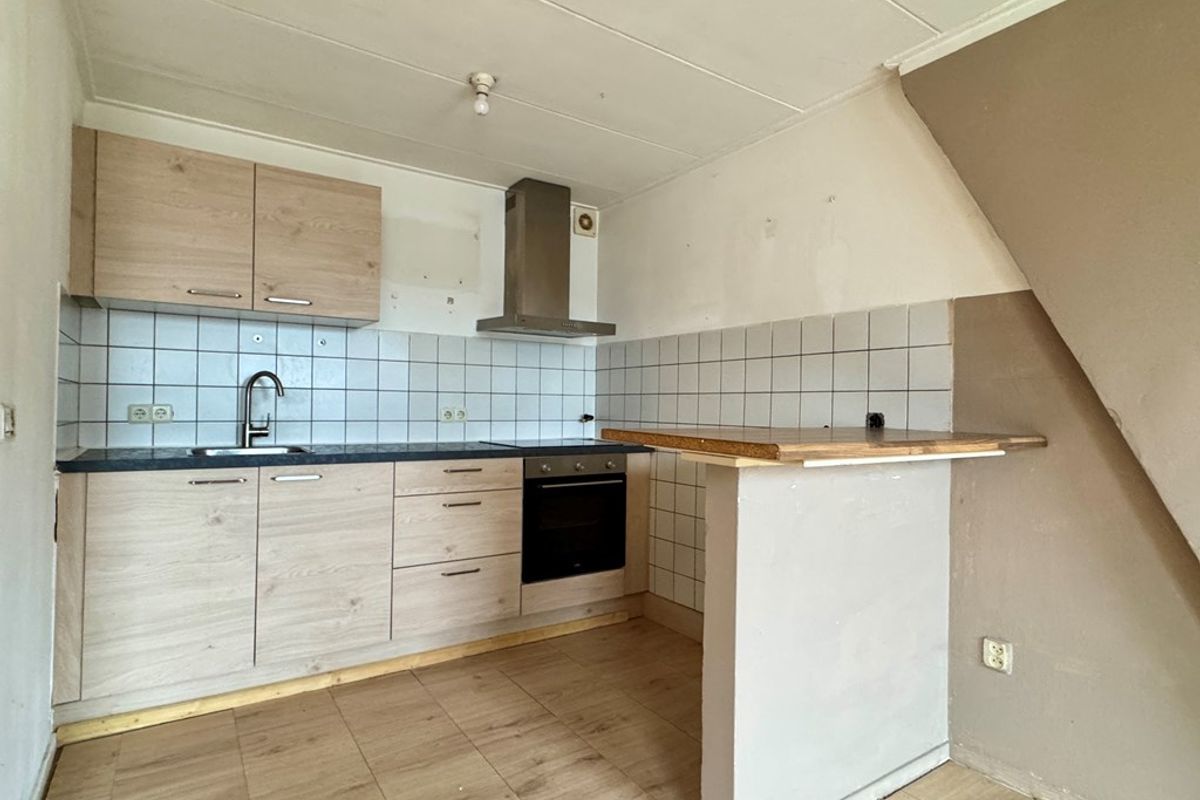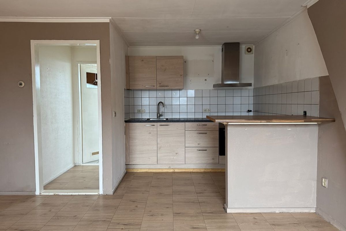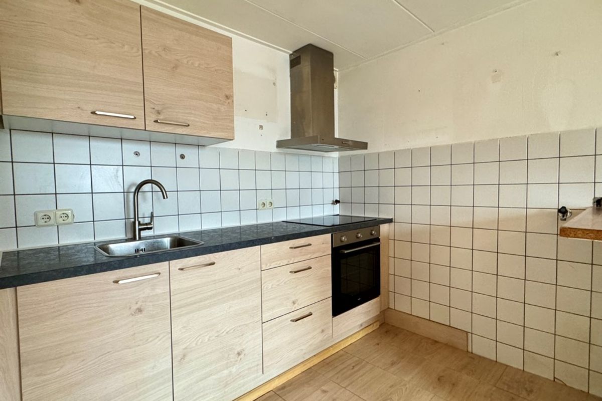 - Open keuken met laminaatvloer en nette standaard inrichting voorzien van inductie kookplaat, oven en aansluiting wasmachine.