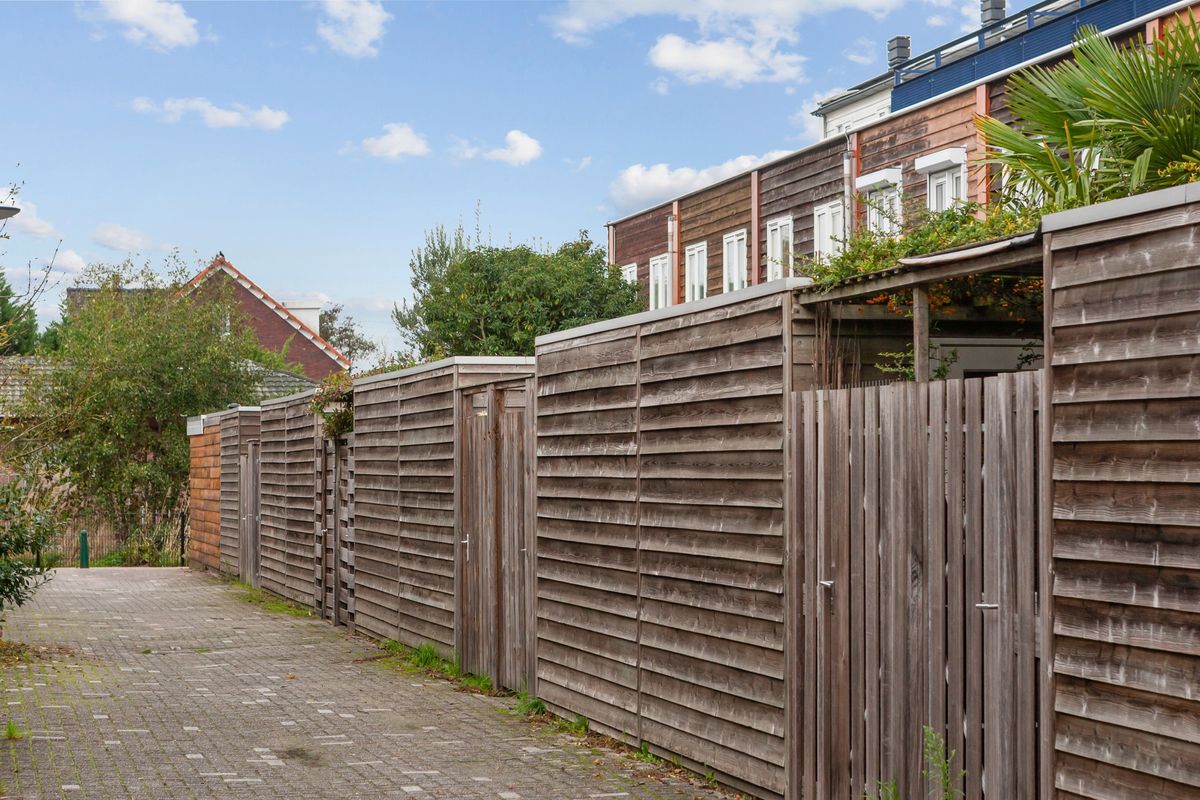 De onderhoudsvriendelijke achtertuin ligt op het zonnige zuiden, waardoor u vrijwel de hele dag van de zon kunt genieten. Extra voorzieningen: buitenkraan, achterom en vrijstaande houten berging voorzien van elektra.