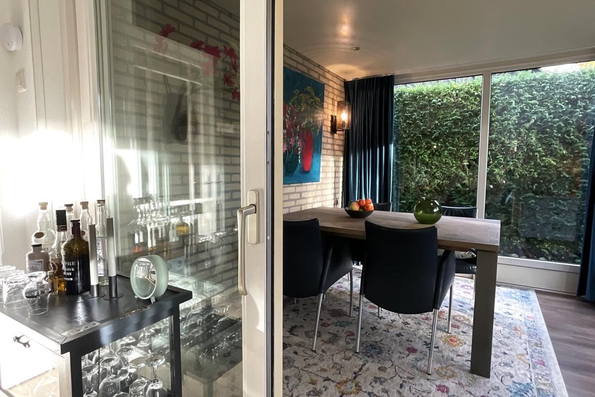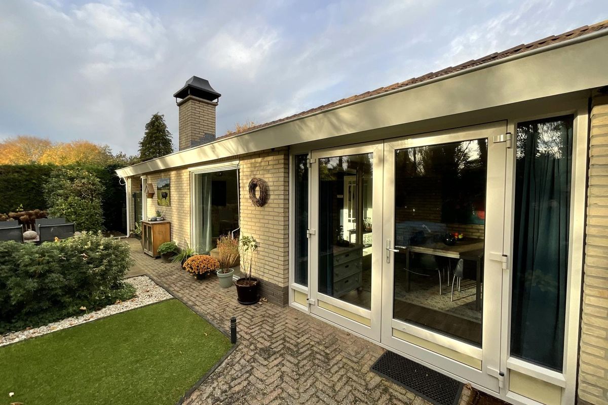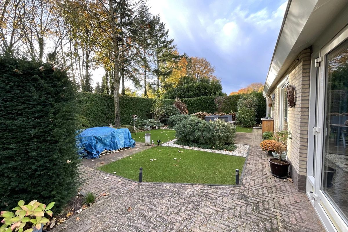 De besloten tuin is omgeven door groene hagen, waardoor u hier volop privacy ervaart. De tuin is volledig afgesloten en daardoor bijzonder geschikt voor honden. Er zijn meerdere terrassen en onderhoudsarm straatwerk aangelegd, afgewisseld met een verzorgd (kunst)gazon en fraaie beplanting. Een houten fietsenschuurtje biedt praktische opbergruimte voor fietsen of tuingereedschap. Dankzij de carport en oprit is er altijd parkeerruimte op eigen terrein. Bovendien is er een klein overkapt gedeelte waar u ook bij regenachtig weer heerlijk buiten kunt zitten.