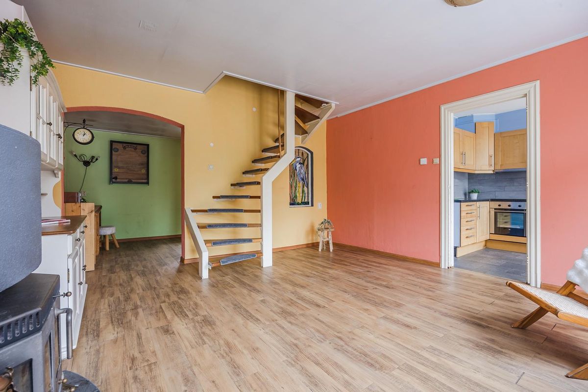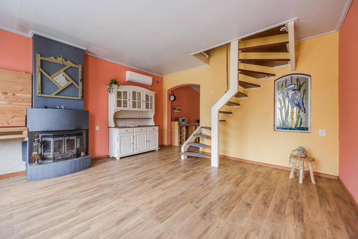De nette woonkamer is opgedeeld in 2 delen: een eetkamer en een zitgedeelte. De woonkamer is voorzien van een laminaatvloer. In het zitgedeelte bevindt zich een sfeervolle houtkachel, airconditioning (koelen / verwarmen) en tevens treft u hier de trap naar de 1e verdieping.