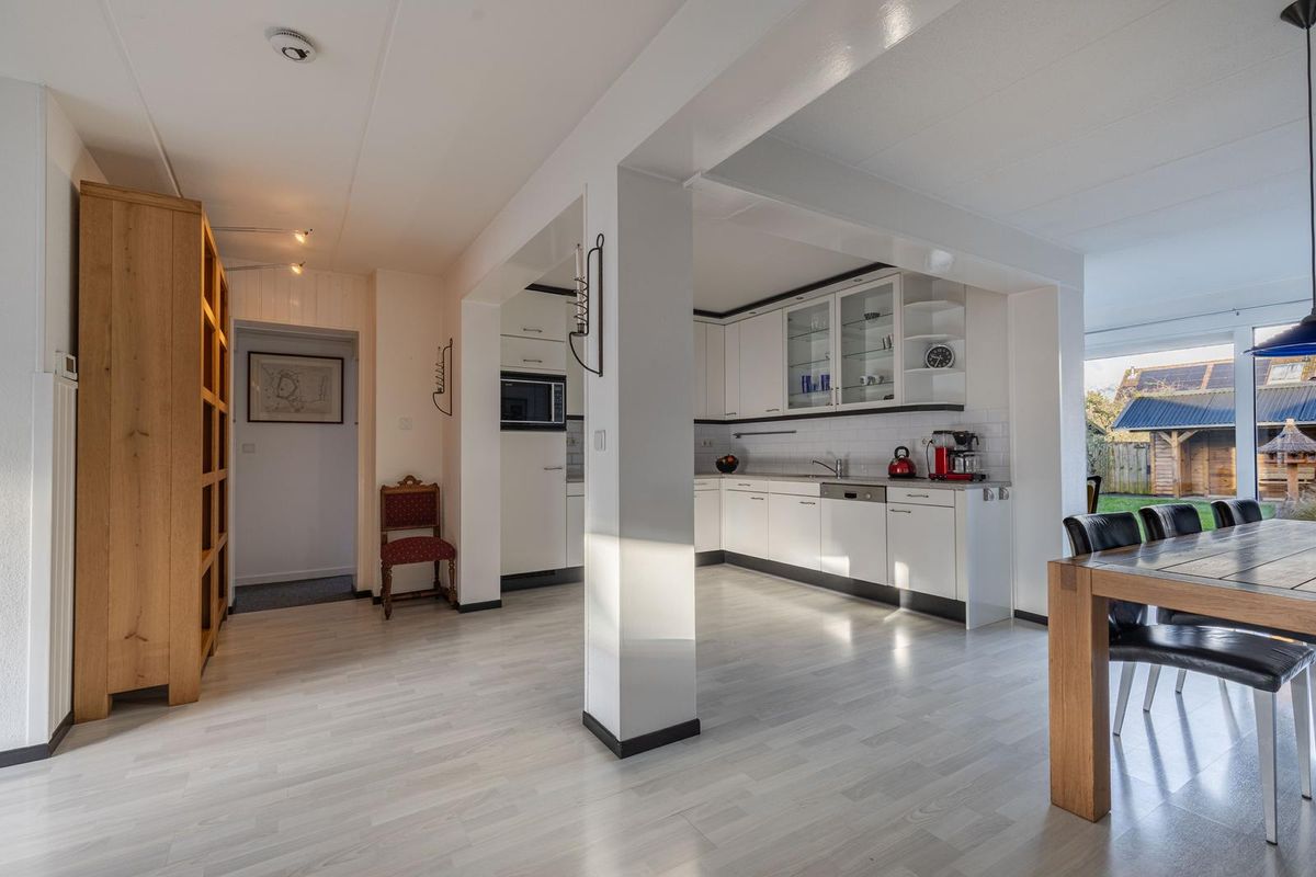 Via de oprit welke aangevuld wordt met een verzorgde voortuin komt u in de tuingerichte woonkamer. Deze ruimte biedt aan de achterzijde een brede schuifpui en een loopdeur naar de achtertuin. Aansluitend vind u de open keuken die is voorzien is van diverse inbouwapparatuur zoals 4 pits- gasfornuis, afzuigkap, combimagnetron, koelkast en een vaatwasser. De open verbinding met de woonkamer zorgt voor een ruimtelijk gevoel. Via de keuken komt u in de extra slaapkamer/werkkamer. Aan de linkerzijde vindt u de berging voorzien van verwarming en een deur naar de oprit.