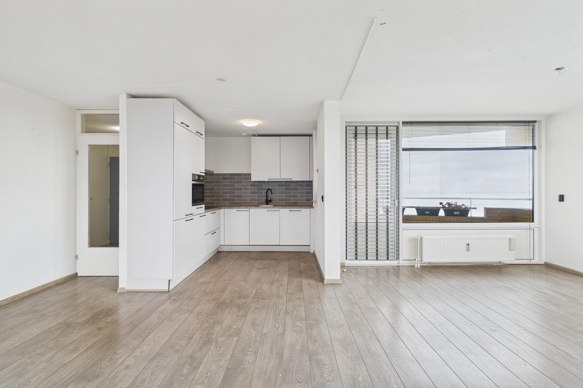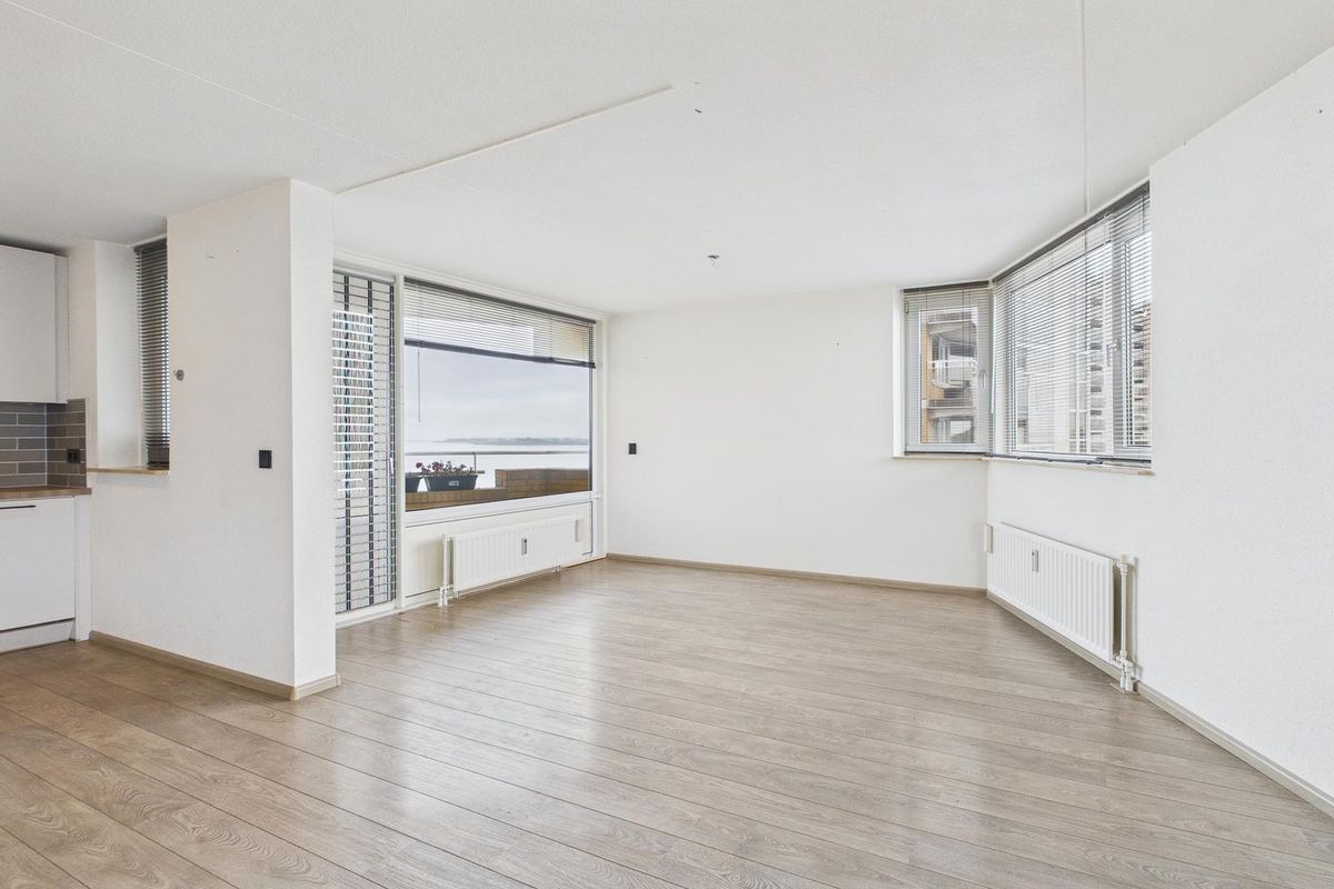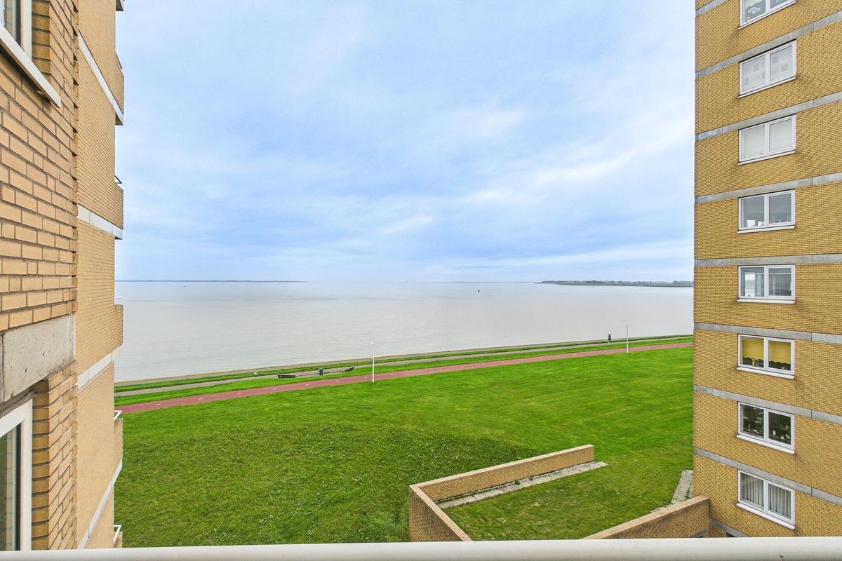 Indeling: centrale entree met intercom, brievenbussen, liftinstallatie en trappenhuis. Via de galerij bereik je het appartement. Binnenkomst in de hal met provisiekast, berging/wasruimte en meterkast, gevolgd door een toilet met fonteintje. De ruime woonkamer heeft zowel aan de stadszijde als aan de zeezijde een balkon, waardoor je op elk moment van de dag kunt genieten van zon en uitzicht. Vanaf het balkon aan de noordzijde kijk je uit over de Westerschelde, waar de scheepvaart tussen Antwerpen en de Noordzee voor een levendig schouwspel zorgt.