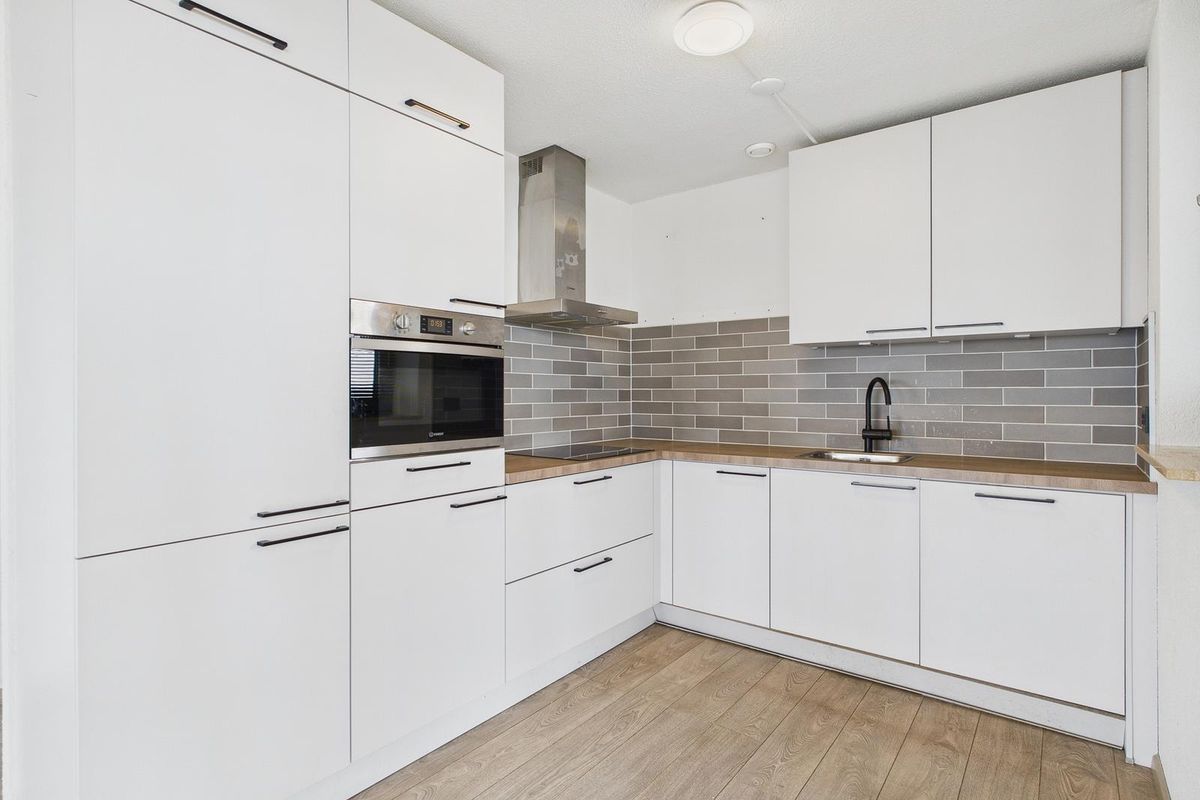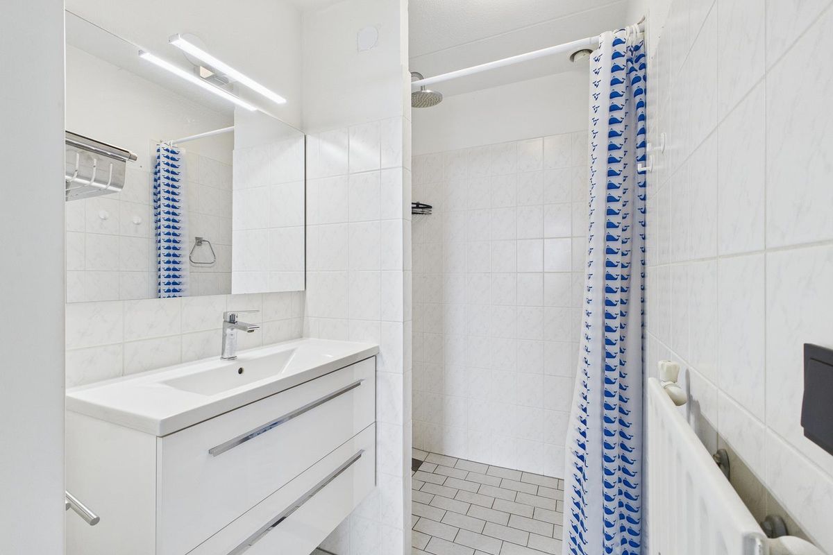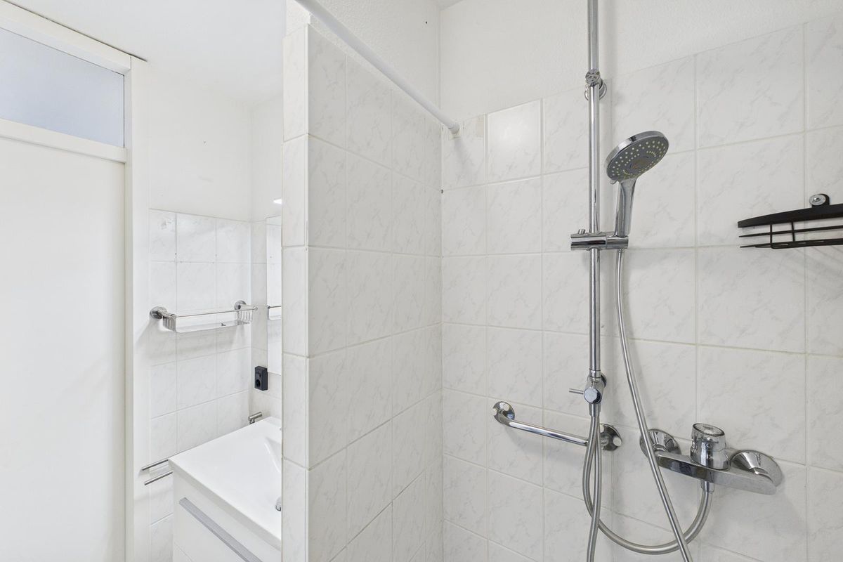 De halfopen keuken is uitgevoerd in een moderne, witte hoekopstelling en voorzien van een inductie kookplaat, afzuigkap, combimagnetron, vaatwasser en een koel-vriescombinatie. Verder is er een ruime slaapkamer en een badkamer met wastafelmeubel en inloopdouche.