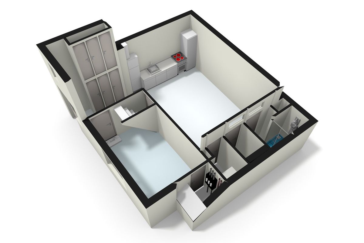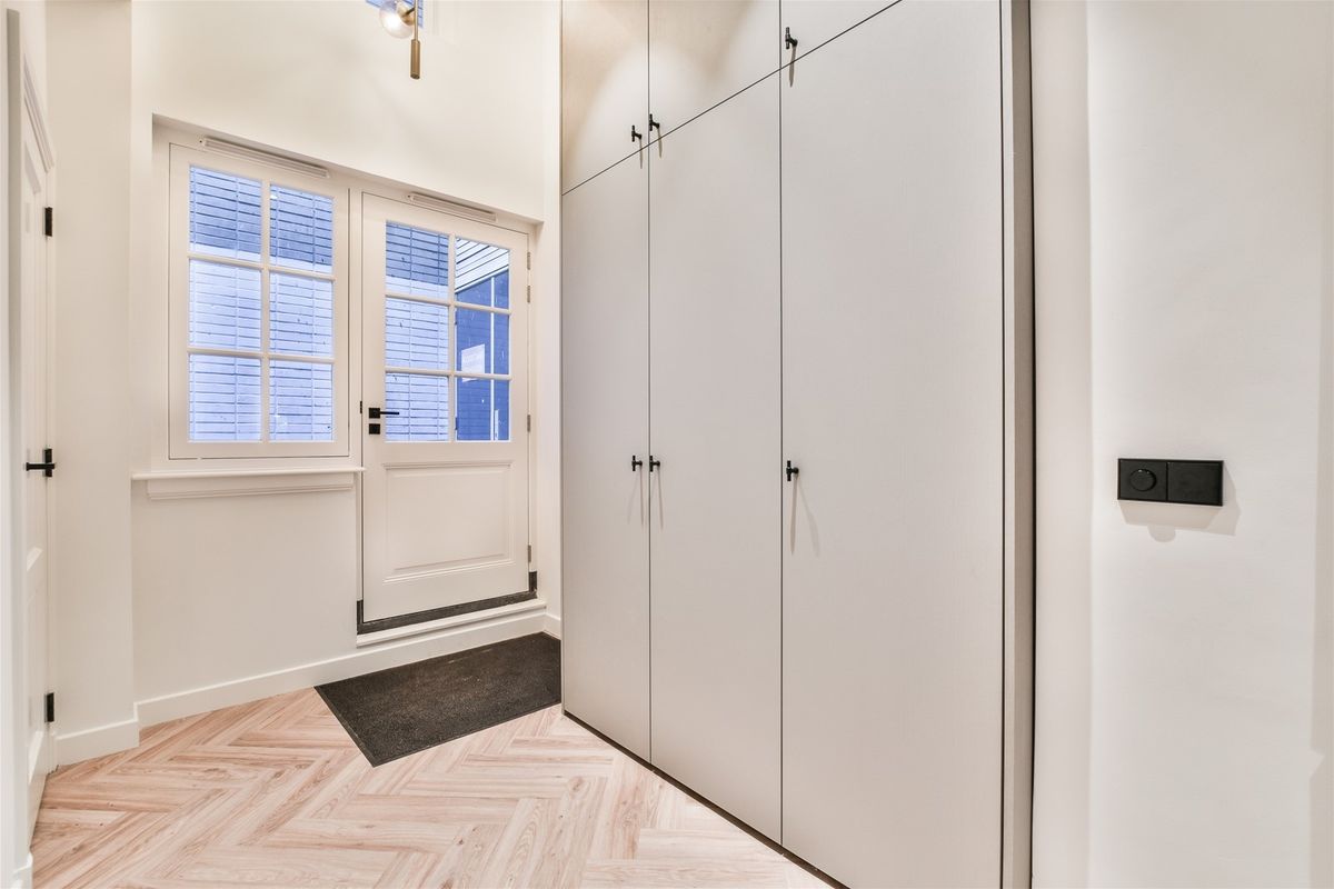 Via de entree — voorzien van een royale inbouwkast — betreedt u het appartement. Direct naast de entree bevindt zich de eerste slaapkamer, voorzien van raambekleding (vitrage & blinds) en een ingebouwd hoofdboard.