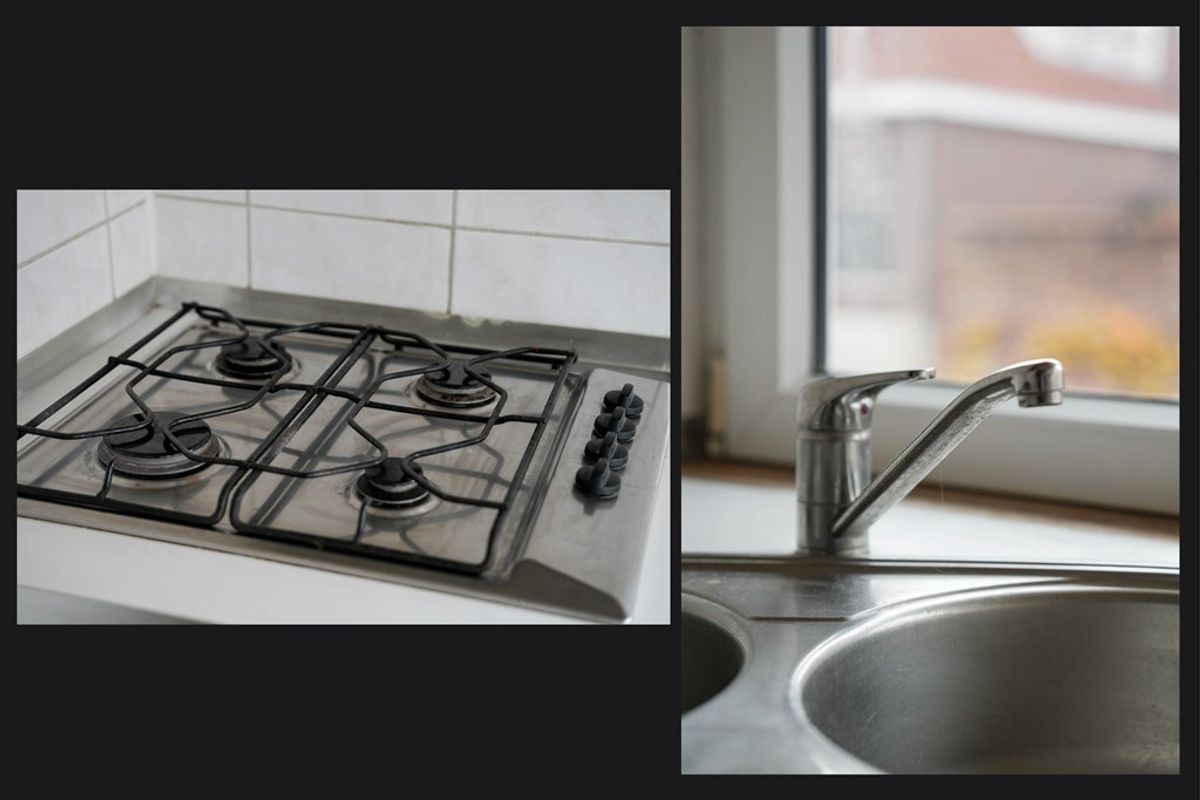 Via de trapopgang bereik je de entree van de woning. Je komt binnen in de hal met het toilet. Aan zowel de linker- als rechterzijde van de hal bevindt zich een woonkamer, waardoor je volop mogelijkheden hebt om zelf de ideale indeling te bepalen. De keuken is eenvoudig en vormt een uitstekende basis voor renovatie naar jouw wensen.