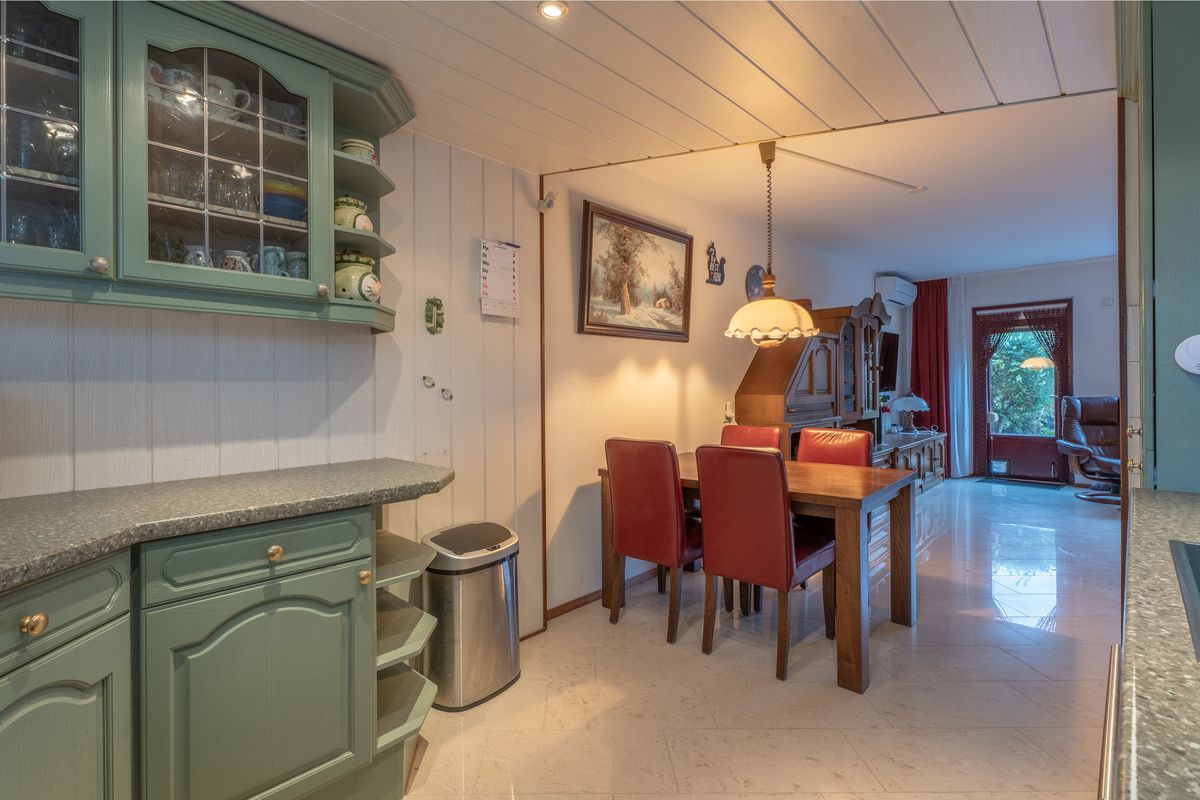 De woonkamer is ruim opgezet, voorzien van airco, grote raampartijen en biedt toegang tot de ruime tuin. Aan de voorzijde van de woning bevindt zich de open keuken, waar je alle mogelijkheden hebt om deze naar eigen smaak te moderniseren.