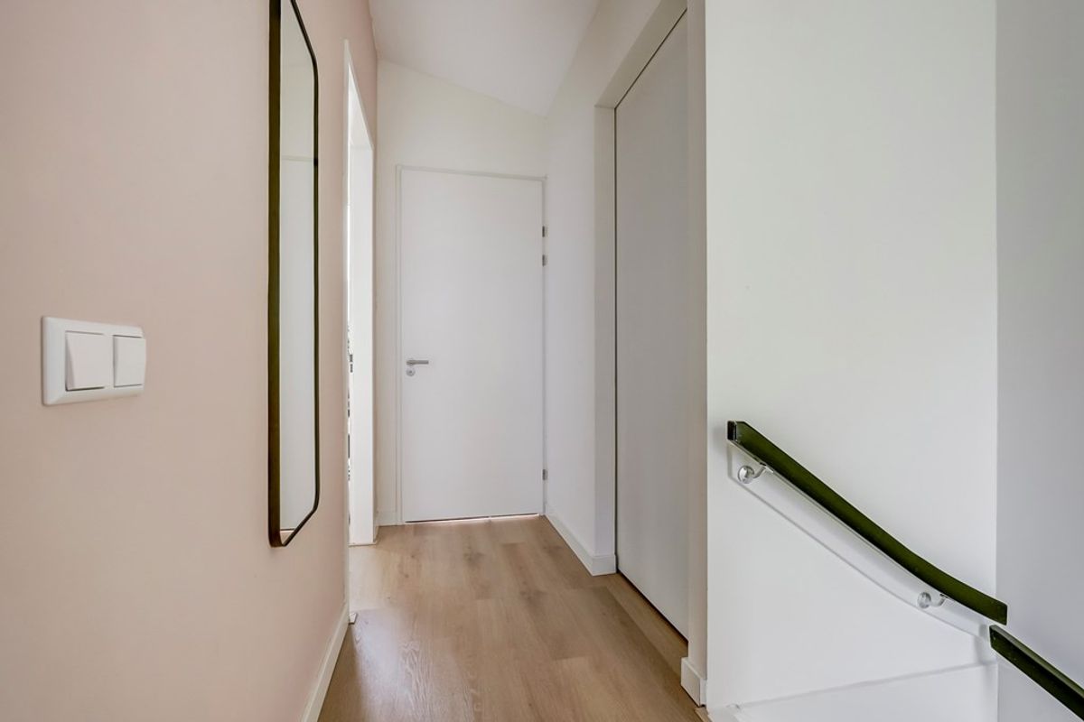 De overloop geeft toegang tot de slaapkamers en de badkamer. Aan de achterzijde bevindt zich een riante slaapkamer die dankzij een lichtkoepel een prachtige hoeveelheid natuurlijk licht binnenkrijgt. Aan de voorzijde is er een tweede slaapkamer met een grote raampartij.
