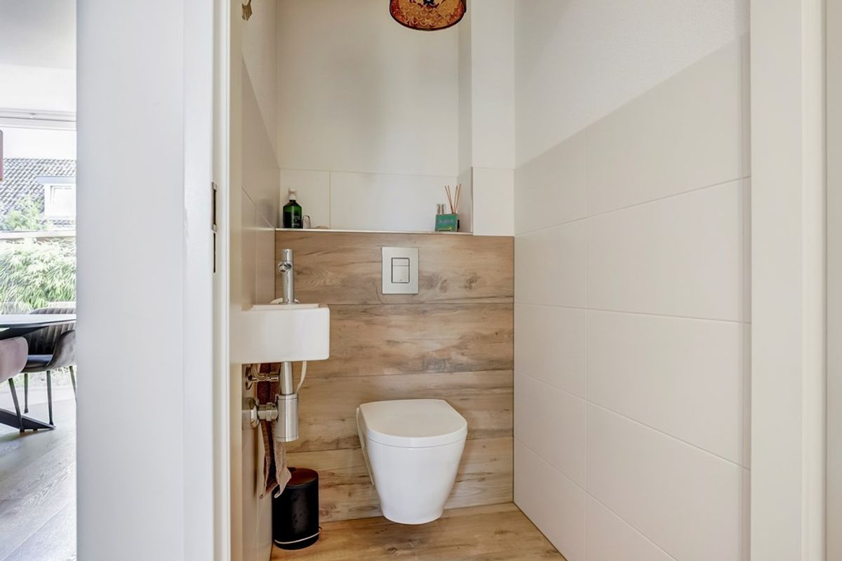 De luxe en ruime badkamer is van alle gemakken voorzien en heeft een moderne uitstraling. De badkamer heeft een inloopdouche, een ligbad, een hangend toilet en een fraai wastafelmeubel. De aparte CV-ruimte biedt opstelplaatsen voor zowel de C.V.-ketel als een zonneboiler.