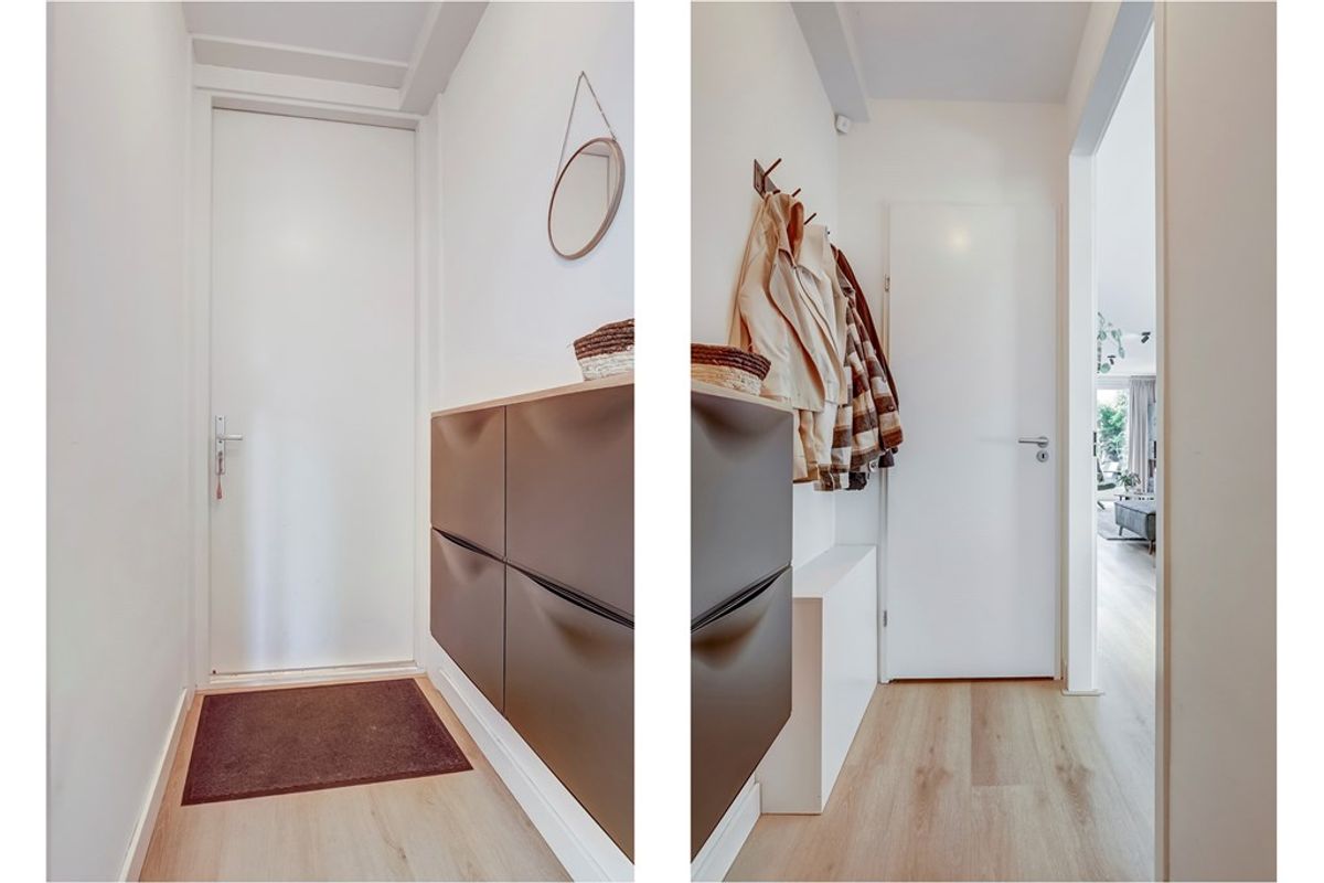 Via de voordeur kom je binnen in de hal met de meterkast. Vanuit de hal is toegang tot de de woonkeuken, die naadloos overloopt in de lichte, tuingerichte woonkamer met schuifpui naar de tuin. Verder is er een moderne toilet en een handige trapkast. Aan de achterzijde van de woonkamer bevindt zich de mooie trapopgang naar de verdieping.