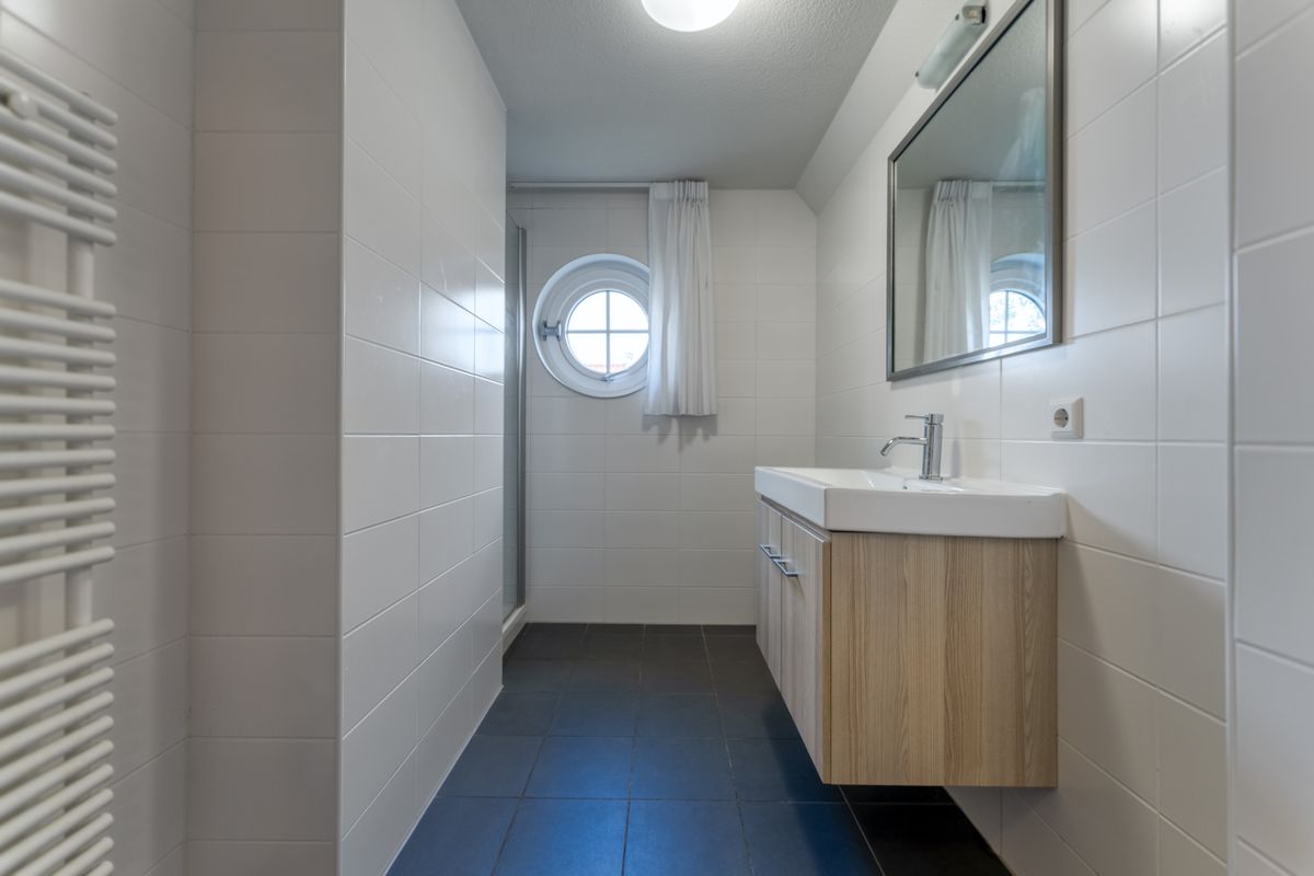 De badkamer is modern en volledig betegeld, uitgerust met een douche, wastafelmeubel en handdoekradiator. Alles verkeert in verzorgde staat en is praktisch ingericht. Op deze verdieping is bovendien een apart tweede toilet, wat de woning extra gebruiksvriendelijk maakt voor gezinnen of gasten.