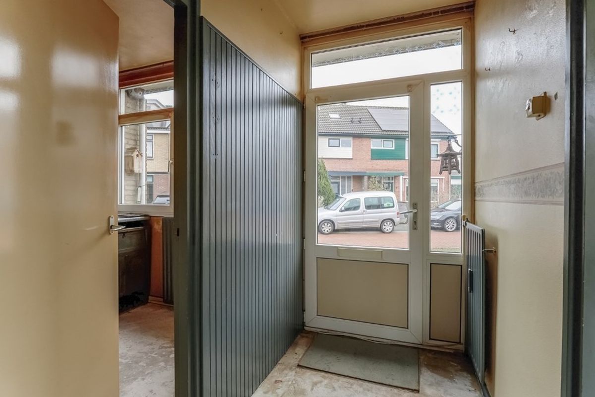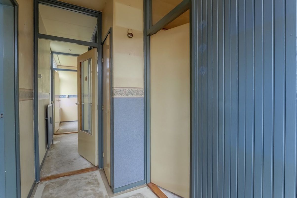 Entree/hal met meterkast, keuken, woonkamer, gang met toilet, bergkast, slaapkamer, c.v. ruimte, douche, ruime slaapkamer.