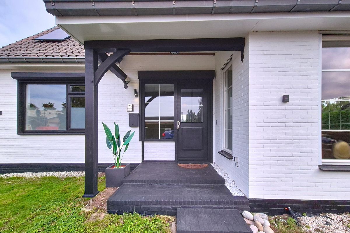 Parkeer tot drie auto’s op de brede oprit om vervolgens via de overdekte voordeur de entree van de woning te betreden. De entreehal biedt alle ruimte voor een garderobehoek en biedt tevens toegang tot de verdieping. Verder kan je alle ruimtes van de begane grond langs hier bereiken.