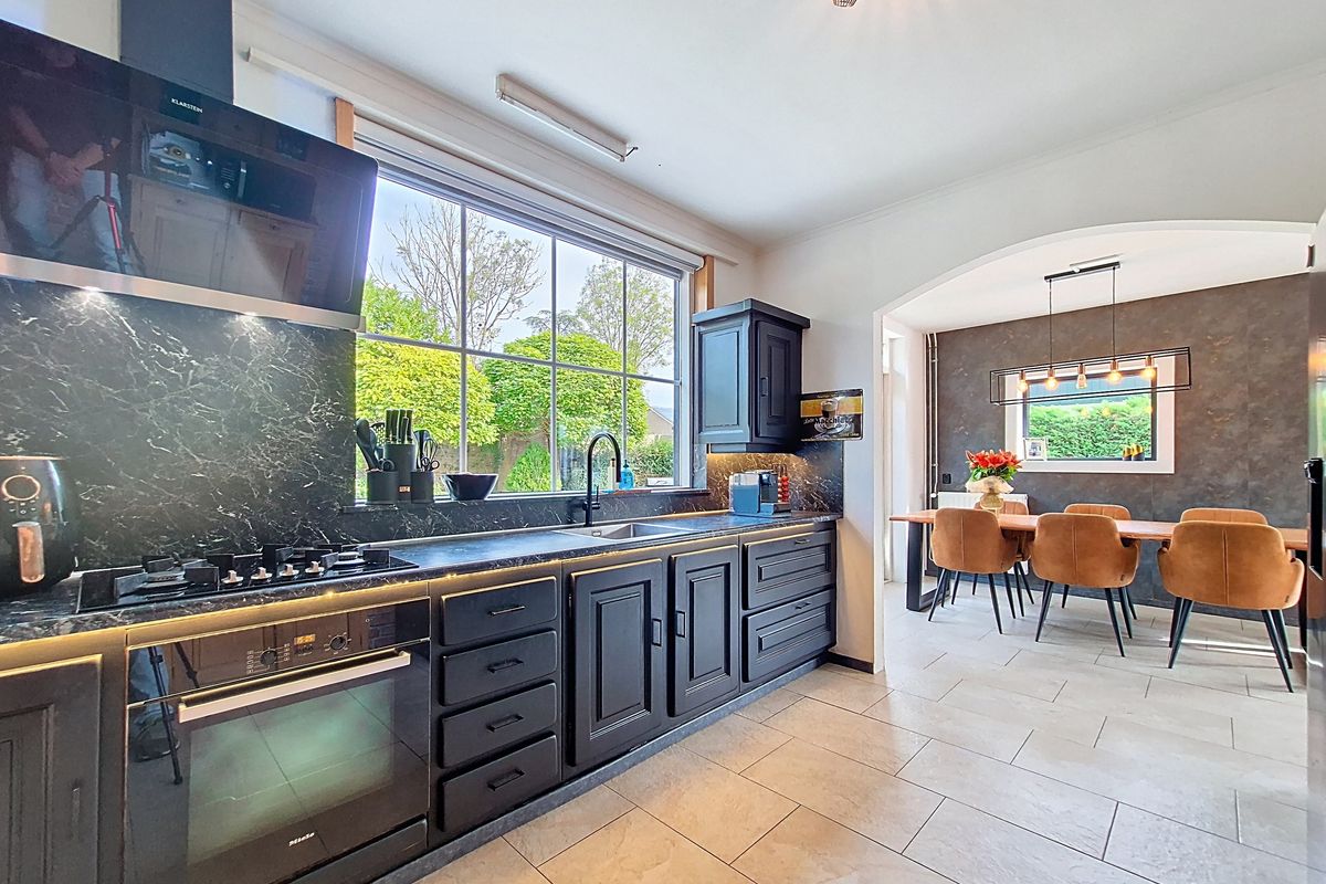 Middels de glazen tussendeur wordt woonkamer betreden. Deze royale ruimte biedt alle plaats voor een grote zithoek en een lange eettafel. Let hier zeker ook op de vele raampartijen, waardoor er veel licht binnen komt. Ook is de tuin toegankelijk middels een enkele én een dubbele tuindeur. Vervolgens betreden we de keuken, deze is ook recent helemaal opgeknapt en voorzien van een nieuwe kraan en afzuigkap. Verder biedt het nog apparaten als een oven en een gasfornuis. Het natuurstenenblad zorgt voor veel werkruimte. Aansluitend is de bijkeuken te vinden met plaats voor de wasmachine/vaatwasser. Langs hier wordt tevens de tuin betreden.