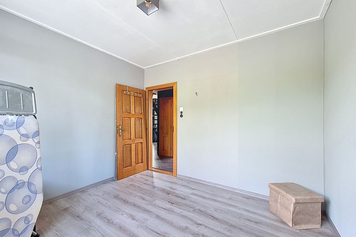 We gaan terug naar de hal om de overige ruimtes te betreden. We hebben hier nog het toilet en de eerste badkamer. Deze recent opgefriste badkamer is voorzien van een wastafel met meubel en een inloopdouche. Tenslotte treffen we nog de twee ruime slaapkamers aan, ideaal voor het gelijkvloers leven. Nu is er één slaapkamer in gebruik als walk-in closet, maar je kan uiteraard ook prima een ruimte gebruiken als kantoor/salon of hobbyruimte.