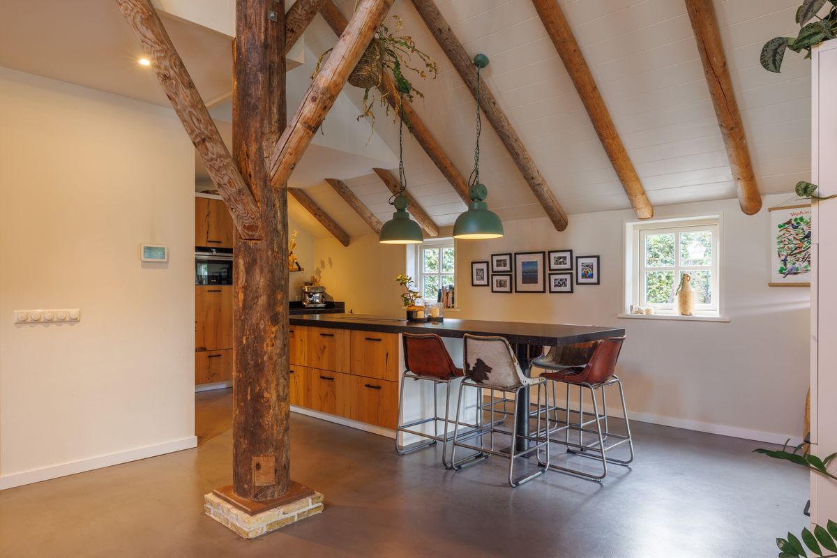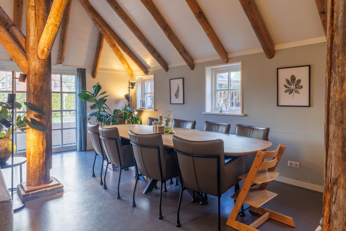 De boerderij is gebouwd met oog voor detail en combineert de uitstraling van een woonboerderij met het comfort van nieuwbouw. Oude gebinten, open ruimtes en de balustrade geven de woning karakter. De hoge bouweisen, mate van isolatie en vloerverwarming zorgen voor comfort.