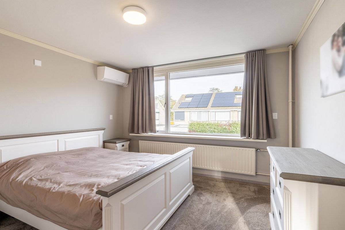 Aan de achterzijde van de woning bevinden zich 2 slaapkamers, waaronder de masterbedroom, deze is voorzien van airco. Aan de voorzijde van de woning bevindt zich de 3e slaapkamer met rolluik.