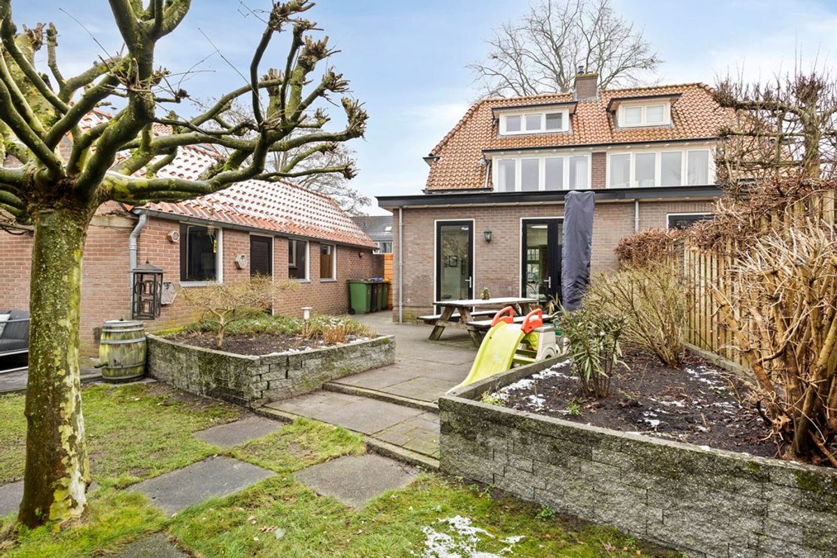 De zonnige achtertuin is bereikbaar vanuit de keuken en vormt een heerlijke plek om te ontspannen. De tuin is in het voorjaar en de zomer erg groen en heeft een open en uitnodigende uitstraling. Er zijn twee terrassen waar u kunt genieten van lange zomerdagen. Via de achterom heeft u direct toegang tot de oprit met plek voor meerdere auto’s en de royale voortuin.