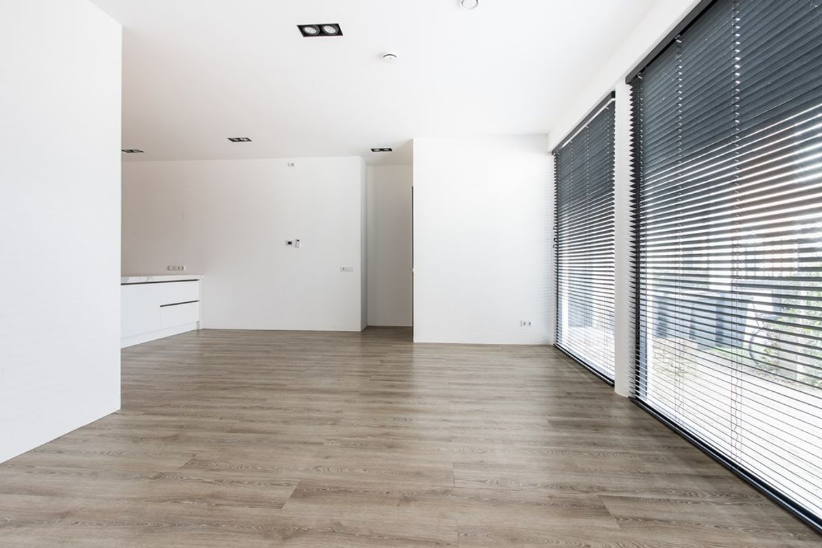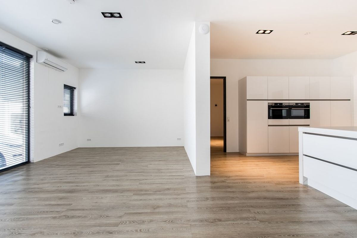De open keuken staat in verbinding met de royale en lichte woonkamer, die samen maar liefst 54 m² beslaat. Dankzij de grote raampartijen, van vloer tot plafond, geniet de ruimte van veel natuurlijk lichtinval en een ruimtelijk gevoel.