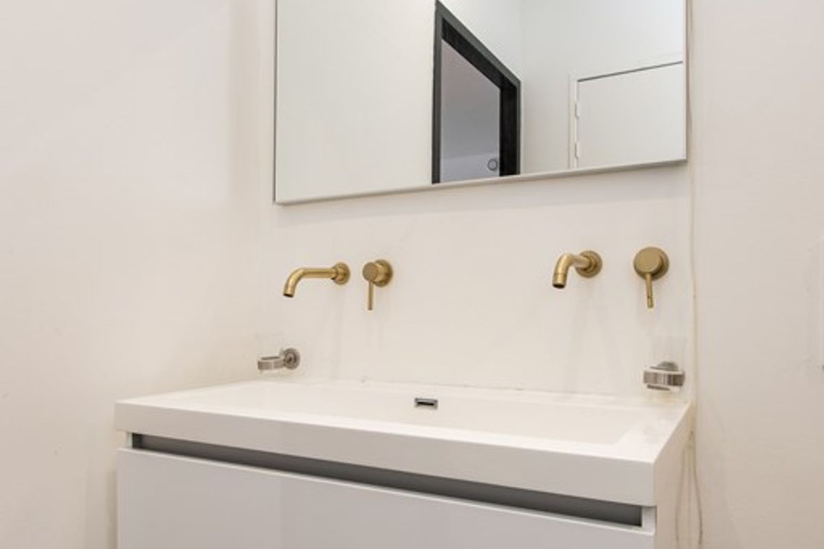 De eerste badkamer is modern en stijlvol afgewerkt en voorzien van een inloopdouche, wastafelmeubel en toilet met fonteintje. De tweede badkamer, gelegen naast de bijkeuken, is praktisch ingericht en ideaal als extra voorzieningenruimte.