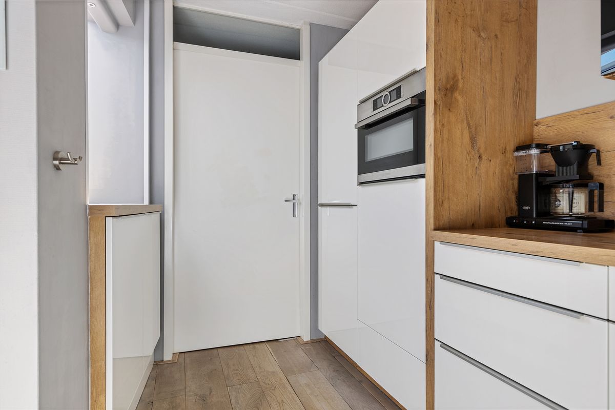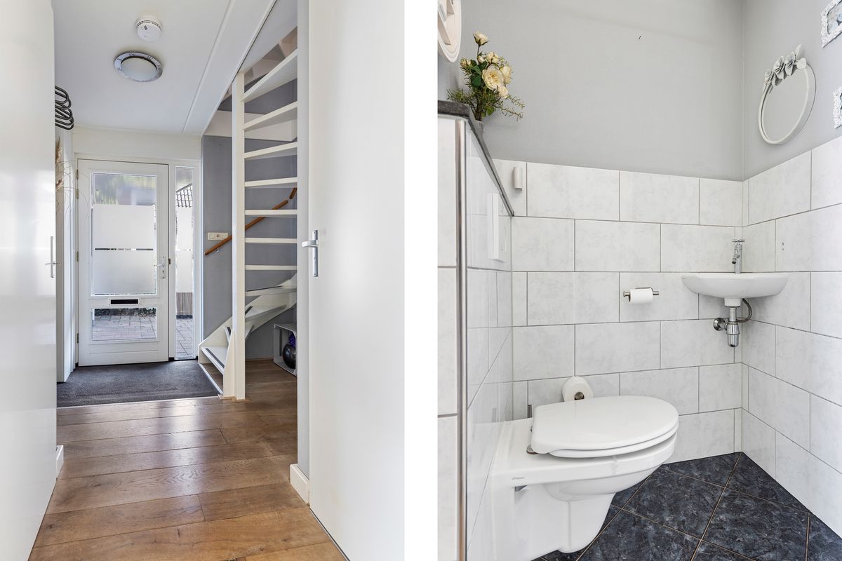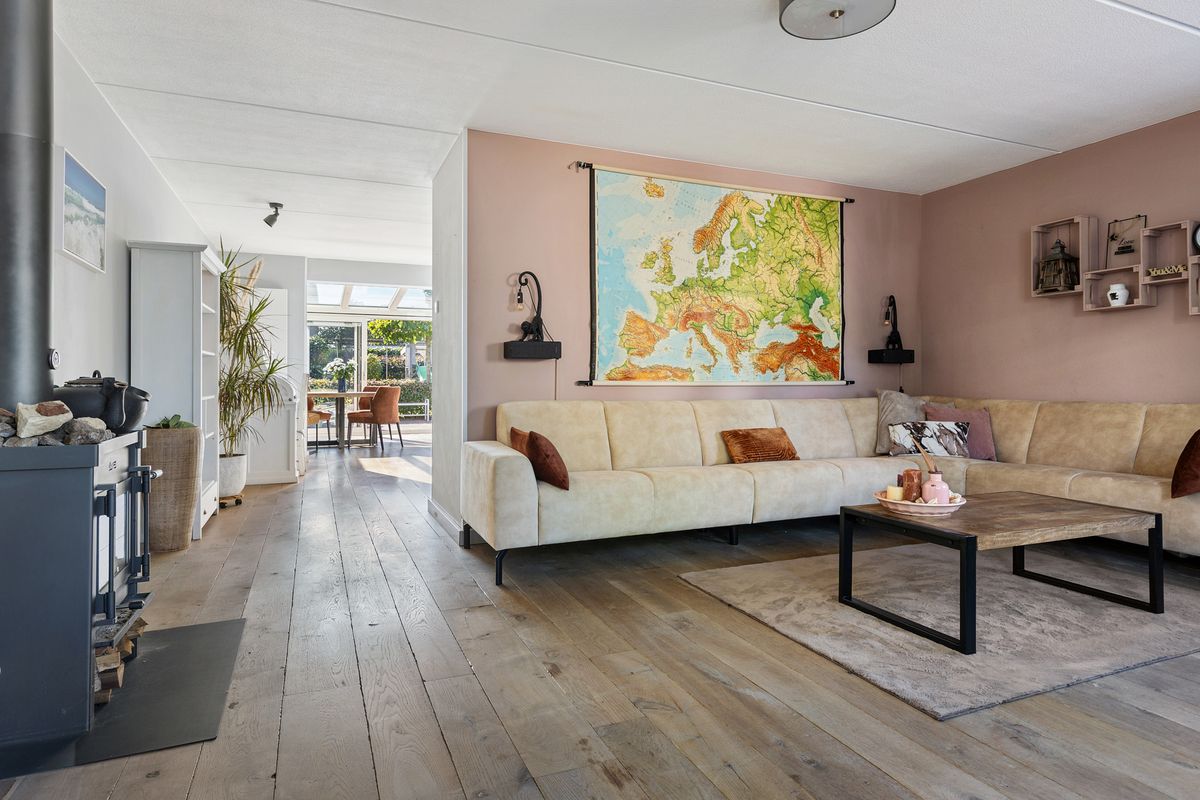 Entree met meterkast en toilet. Ruime, lichte woonkamer met massief eiken vloer en een Jacobus-houtkachel voor extra sfeer. De halfopen keuken is voorzien van een grote inductiekookplaat, vaatwasser, koelkast, vriezer en combi-oven. Aansluitend vind je de volledig geïsoleerde serre (2019) met schuifpui, glazen dak en zonwering, een heerlijke plek om het hele jaar door te genieten van licht en uitzicht op de tuin. Vanuit de bijkeuken (met wasmachineaansluiting) is de volledig geïsoleerde garage (2024) bereikbaar, voorzien van een geïsoleerde deur (2022) en krachtstroom.