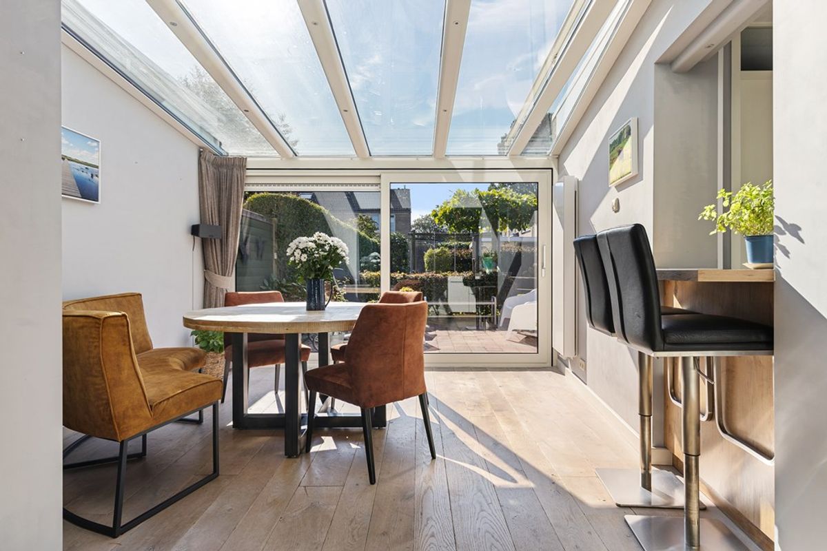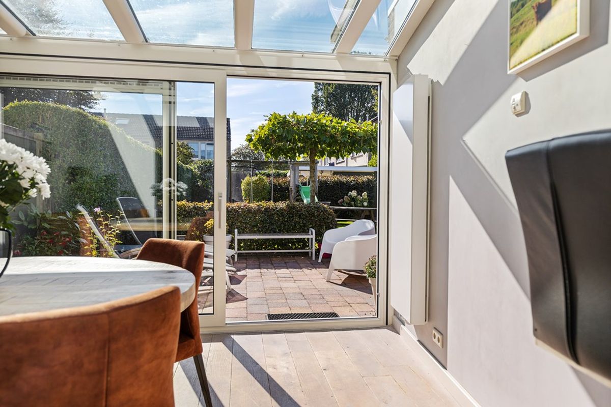 De woning ligt aan een groene en rustige straat met eigen oprit en een zonnige, omheinde tuin op het zuidwesten. De moderne keuken, de unieke geïsoleerde serre met glazen dak, en de sauna met buitendouche maken dit huis tot een heerlijk thuis waar binnen- en buitenleven samenkomen.