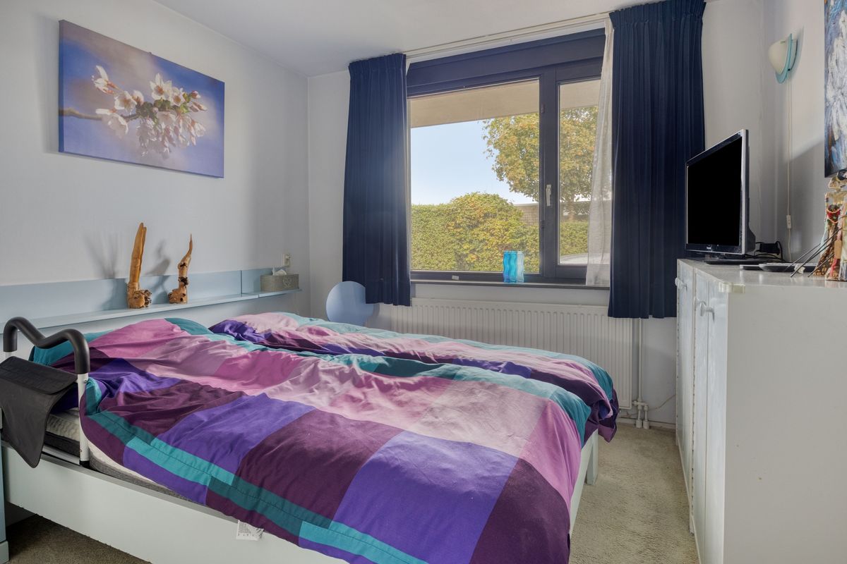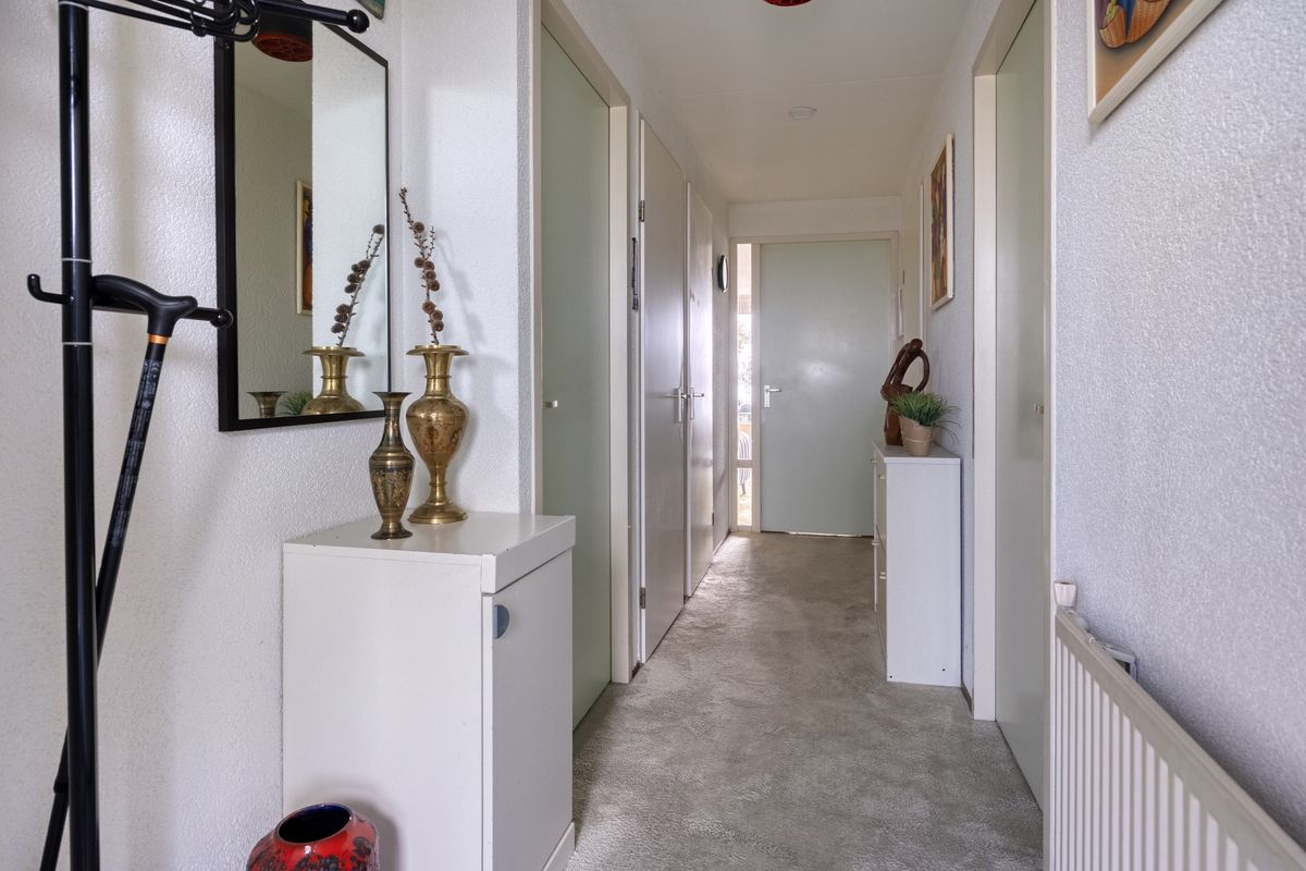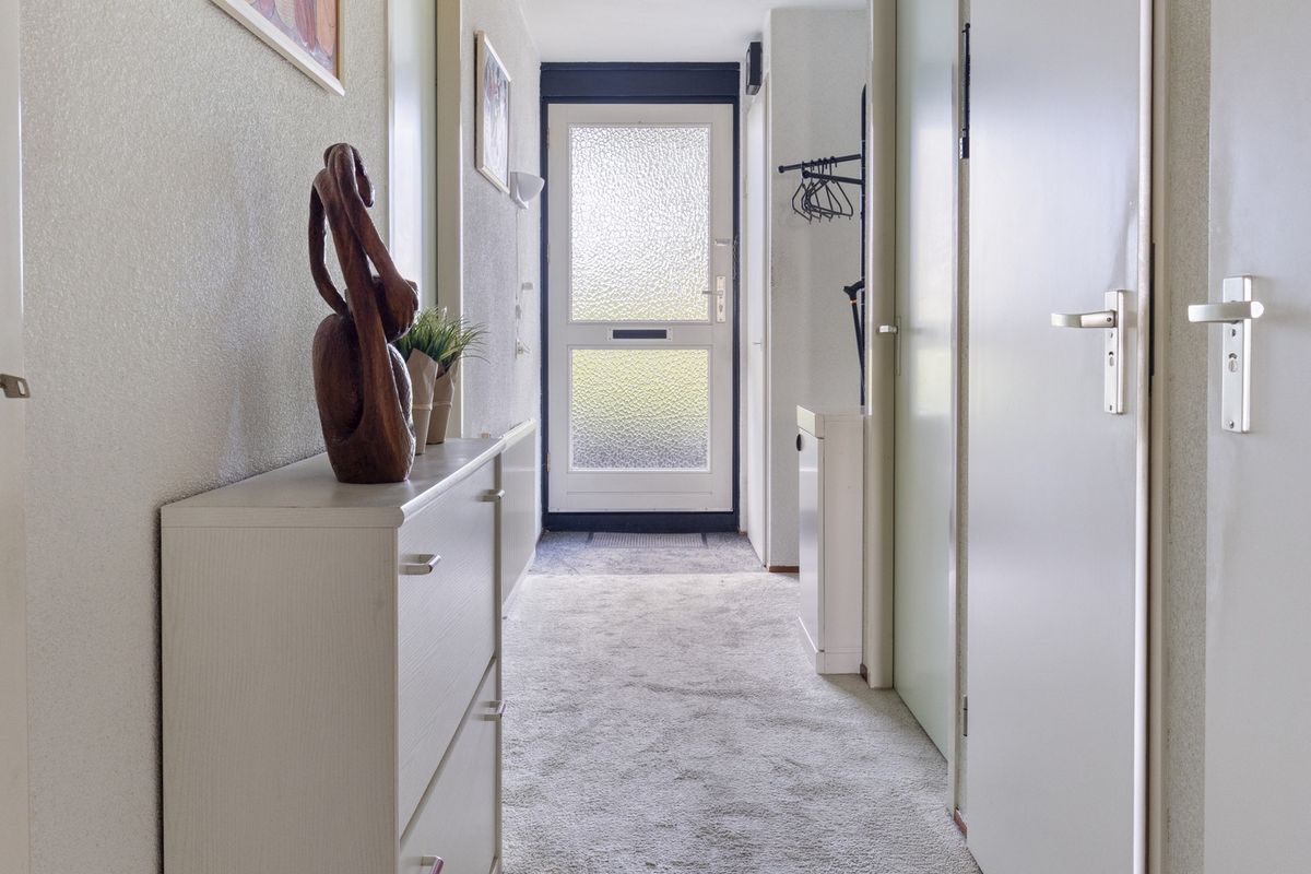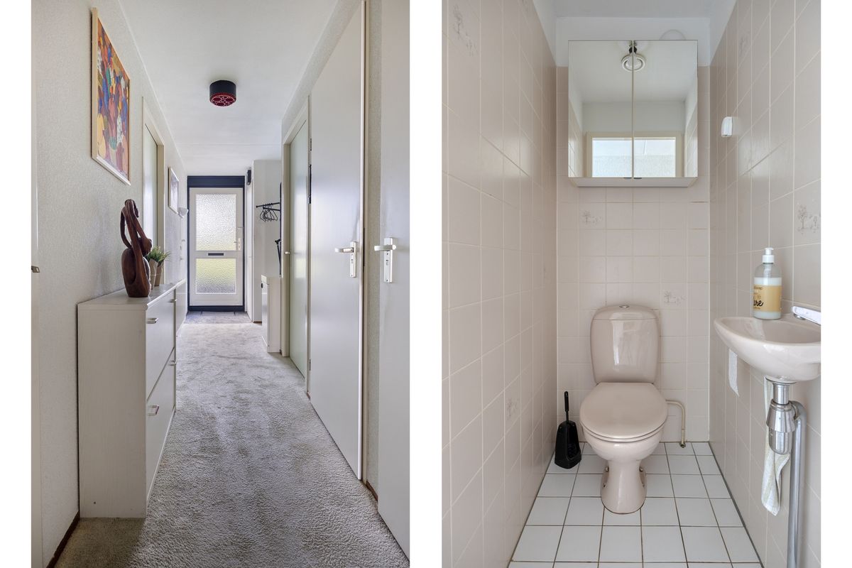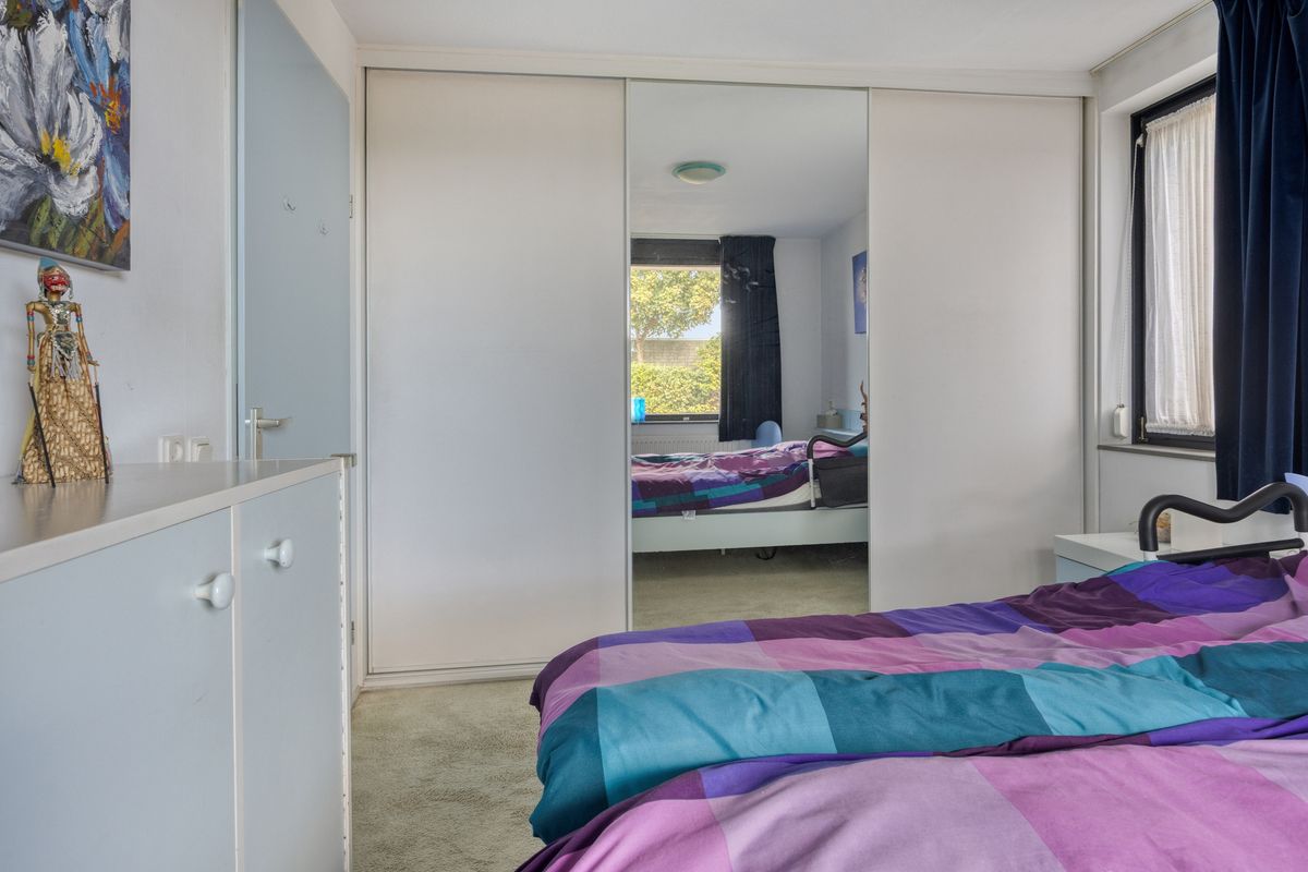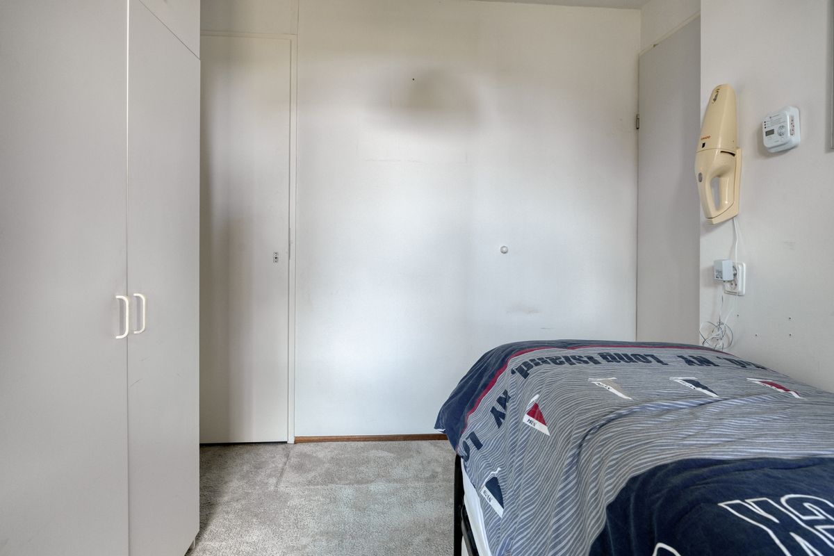 We komen binnen in een lange hal waar zich de meterkast en garderoberuimte bevinden en van waaruit u alle vertrekken kunt betreden. Zo vinden we als eerste aan weerszijden van de hal de slaapkamers. De slaapkamer rechts, op de hoek gelegen, heeft aan 2 zijden ramen wat zorgt voor een fijne lichtinval. Beide ramen zijn voorzien van een rolluik. Achter de schuifdeuren treft u een ruime kleding/bergkast.