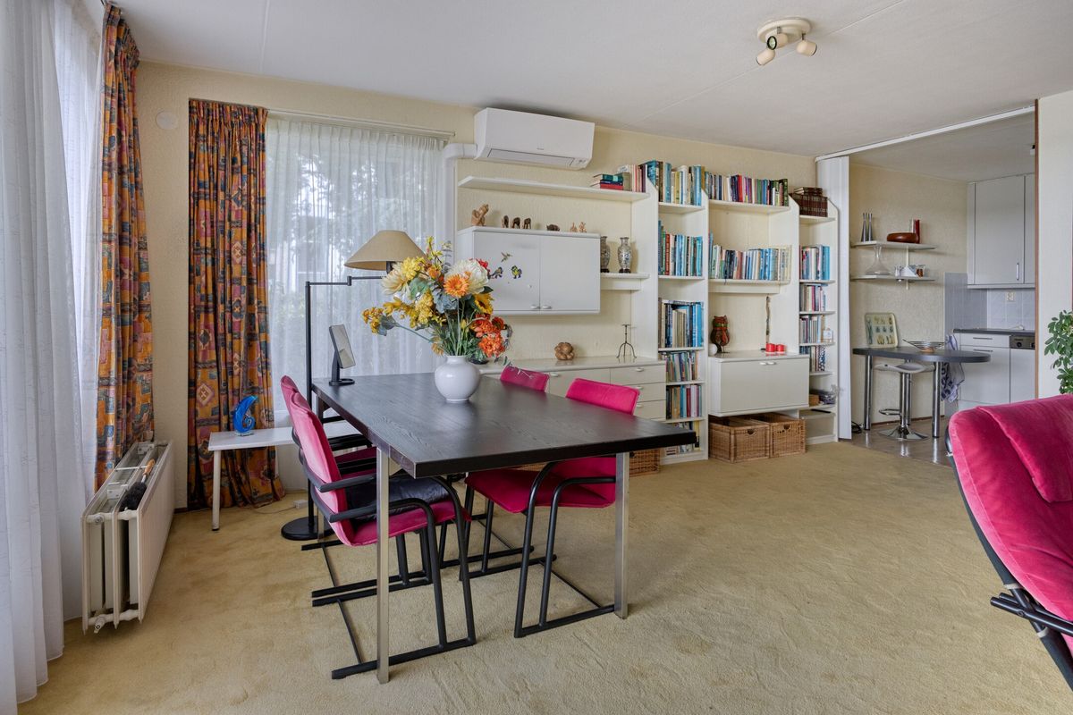 In de woonkamer is het ook heerlijk vertoeven de airco zal op een warme zomerdag voor heerlijke verkoeling zorgen. De open keuken in L vorm is gedateerd maar nog geheel functioneel. De boven- en onderkastjes bieden voldoende opbergruimte.