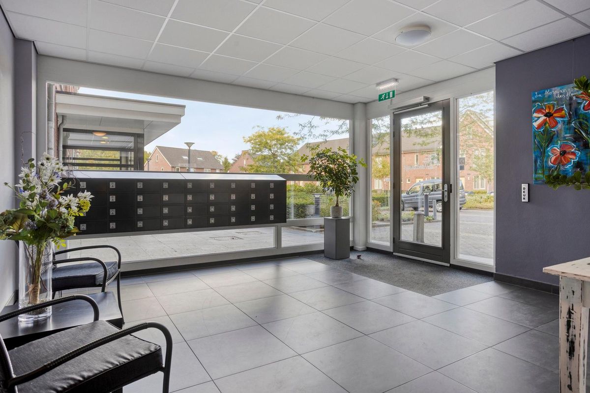 U betreedt het appartementencomplex via een verzorgde centrale entree/hal met intercom en videofooninstallatie. Vanuit de hal heeft u toegang tot de diverse appartementen, de liftinstallatie en het trappenhuis. Het trappenhuis, dat uitsluitend toegankelijk is via de centrale hal, biedt toegang tot het souterrain waaraan de parkeerplaatsen en bergingen grenzen. Aan de buitenzijde bevindt zich het bij het appartementen-complex behorende parkeerterrein voor eventuele bezoekers.