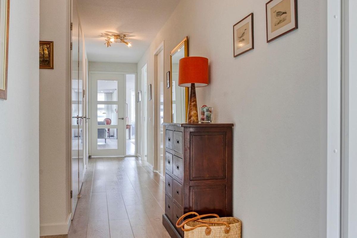 U betreedt het appartement via de entree/hal, die toegang biedt tot de toiletruimte, drie slaapkamers, berging/wasruimte/cv-ruimte, badkamer en de woonkamer. In de ruime entree/hal treft u de videofooninstallatie aan (beeld en geluid) en de meterkast. De afwerking bestaat uit een pvc-laminaatvloer en gestucte wanden en plafond.