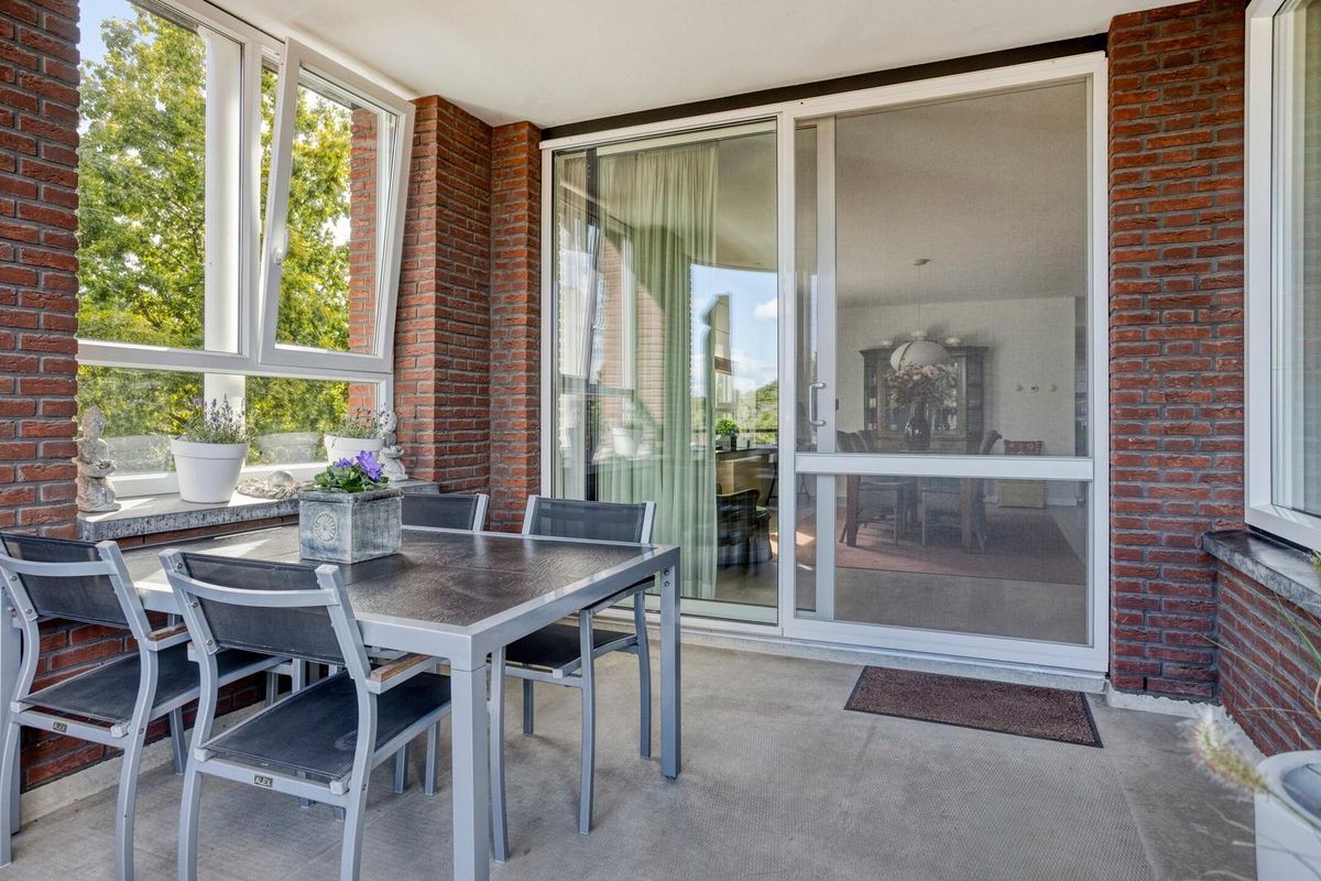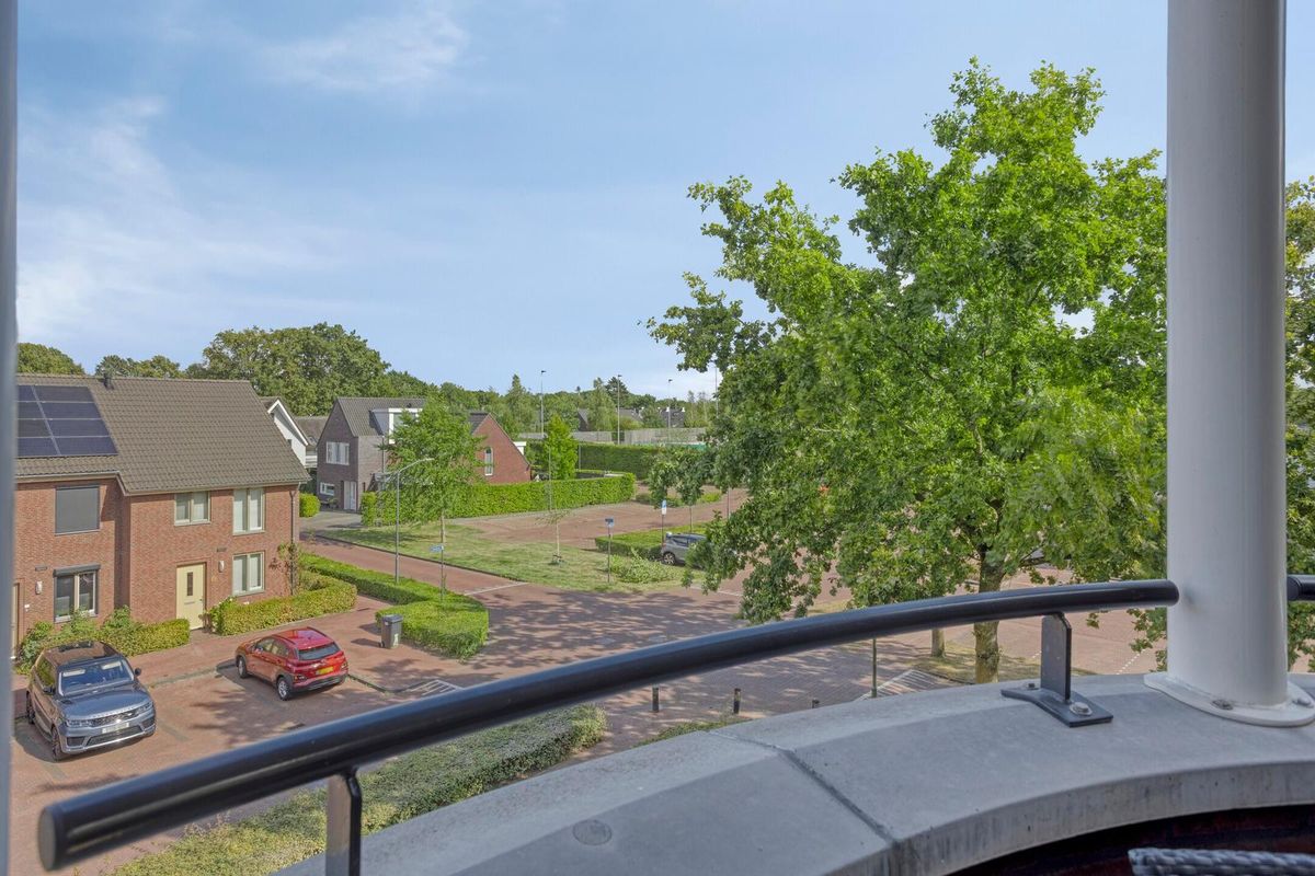 Een schuifpui vanuit de woonkamer biedt toegang tot het riante overdekte dakterras, voorzien van buitenverlichting en electra. Met zonligging op het zuidoosten en een mooi uitzicht op de omliggende openbare buitenruimte.