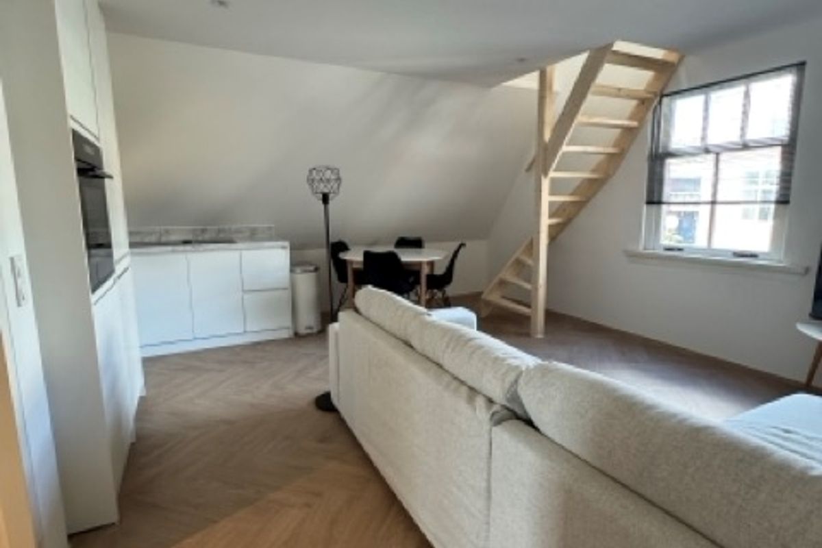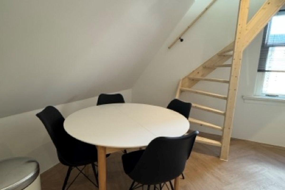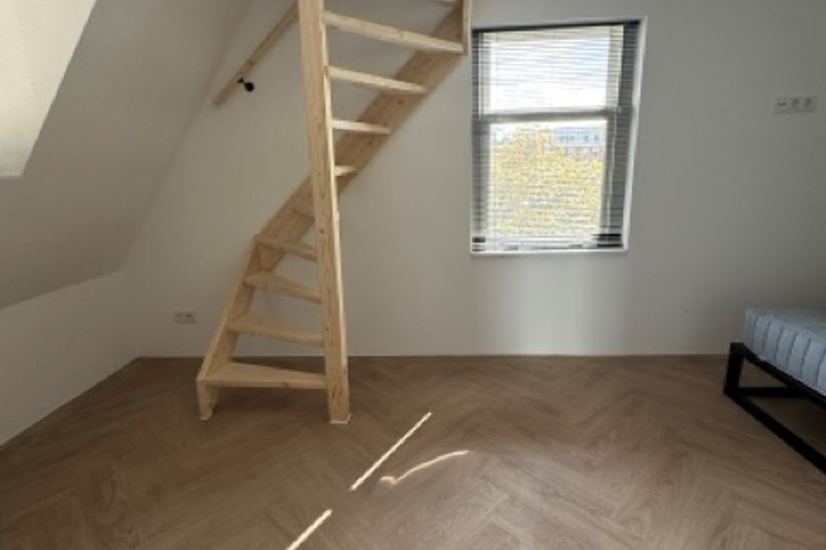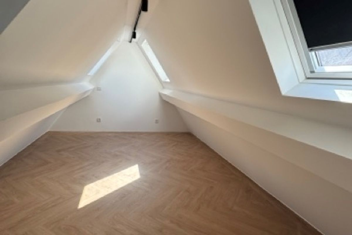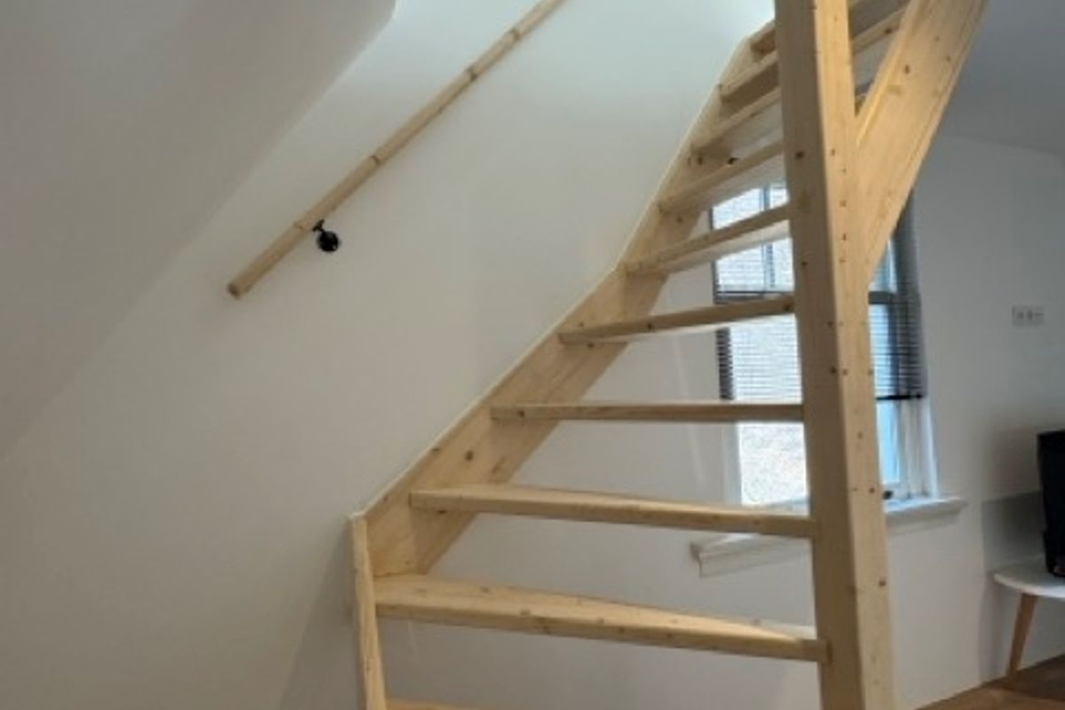 Op de tweede verdieping van deze woning leidt de deur rechts je naar een recent gerenoveerde keuken en een ruime woonkamer. In de woonkamer vind je een trap naar een loft die kan worden gebruikt als atelier of werkplek — ideaal om in alle rust te werken of creatief bezig te zijn. Tegenover de woonkamer bevindt zich de slaapkamer, met grote ramen die de ruimte vullen met natuurlijk licht. Vanuit de slaapkamer leidt een tweede trap naar een extra loftruimte, geschikt voor opslag, ontspanning of een gezellig leeshoekje.