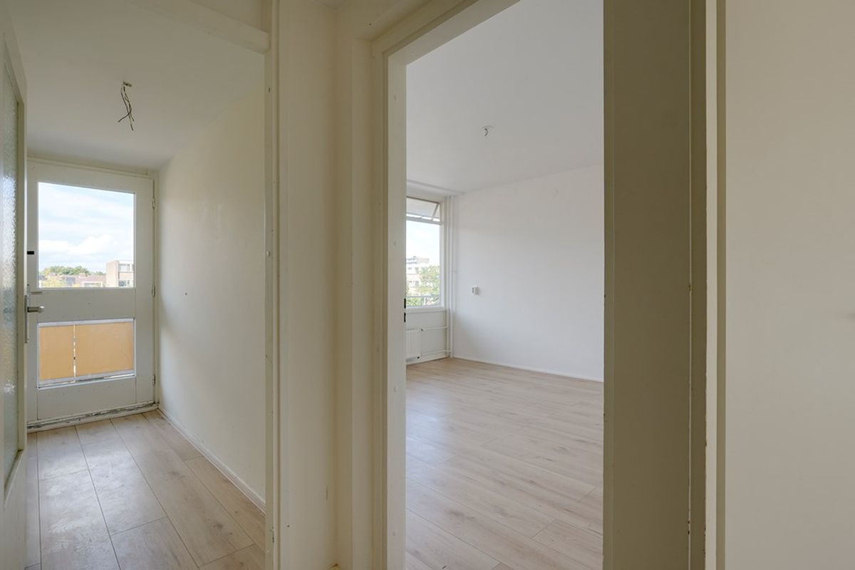 De lichte woonkamer bevindt zich aan de achterzijde van de woning en is voorzien van grote raampartijen die zorgen voor veel daglicht. Vanuit de woonkamer is er toegang tot het balkon, gelegen op het zuidoosten – een heerlijke plek om van de zon te genieten. Naast de woonkamer bevinden zich nog twee slaapkamers, die geschikt zijn als slaap-, werk- of logeerkamer.
