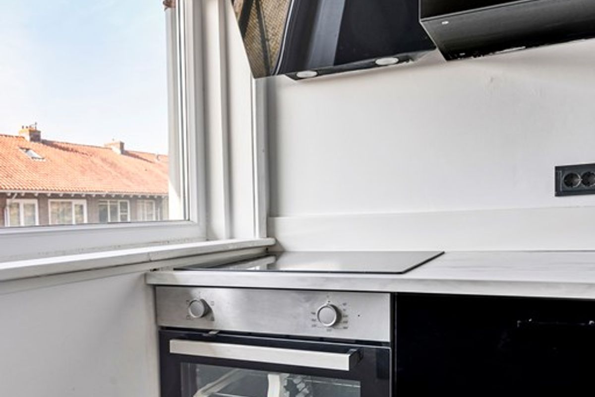 Vanuit de hal betreed je de lichte doorzonwoonkamer, die dankzij de grote raampartijen aan zowel de voor- als achterzijde heerlijk ruimtelijk aanvoelt. Aan de achterzijde geven de schuifpui en het balkon een mooie verbinding met buiten. De woonkamer loopt door naar de L-vormige open keuken, die is voorzien van diverse inbouwapparatuur, zoals een kookplaat, afzuigkap, oven, koelkast en vaatwasser.