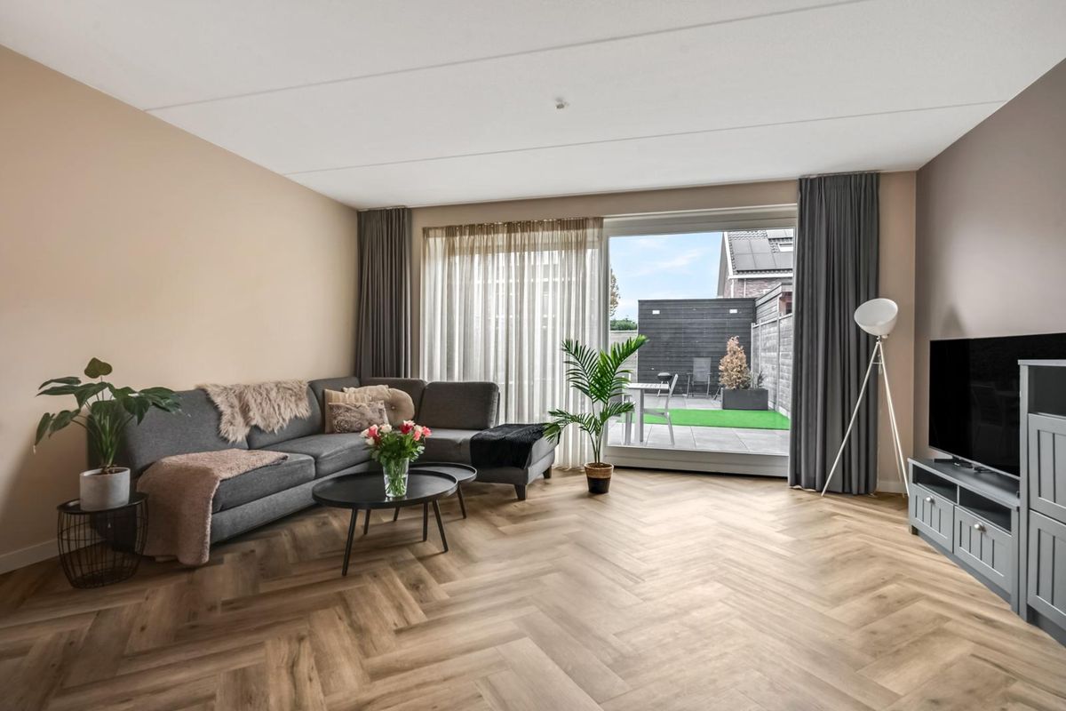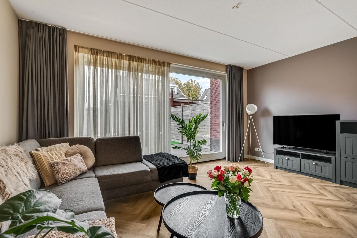 Stap binnen in de lichte en ruime woonkamer waar de visgraatvloer direct opvalt. Deze ligt over de gehele begane grond (met daaronder vloerverwarming, lekker tijdens de koudere dagen die eraan komen!). Grote ramen zorgen voor een zee van daglicht en de schuifpui biedt directe toegang tot de zonnige achtertuin. Een plek waar je heerlijk kunt relaxen of gezellig kunt borrelen met vrienden.