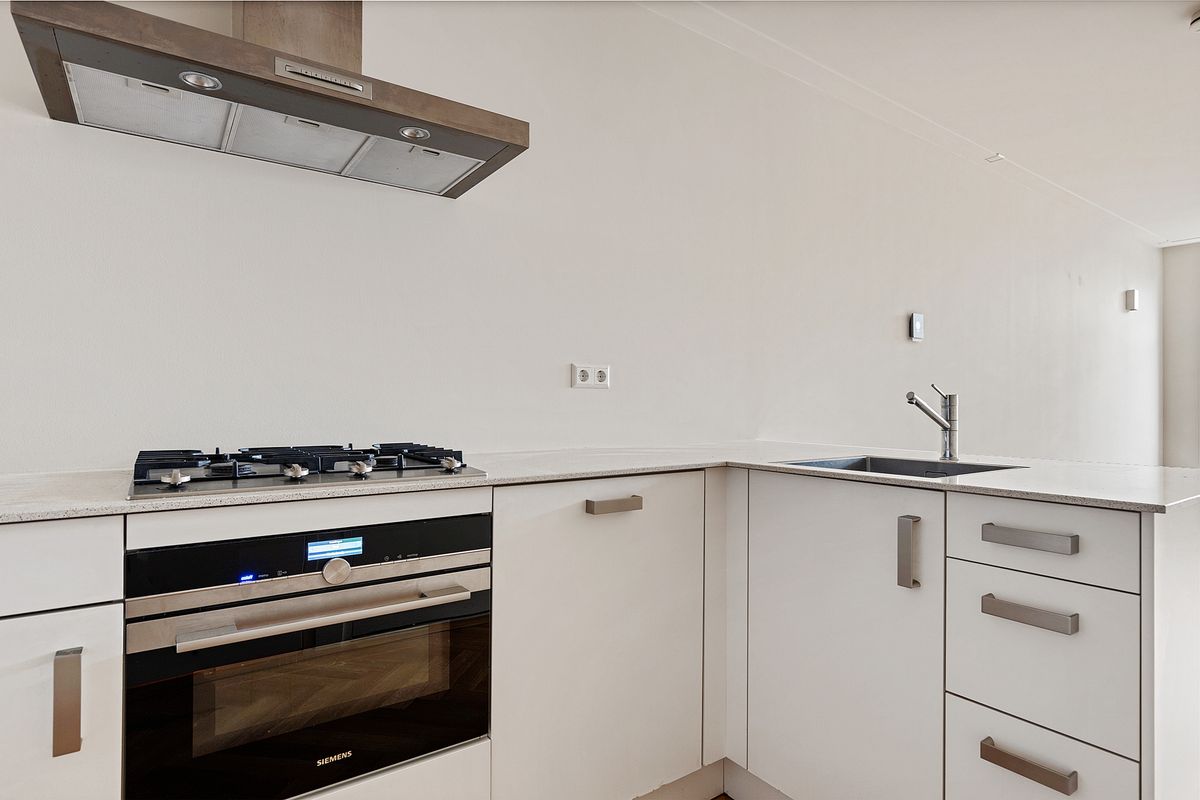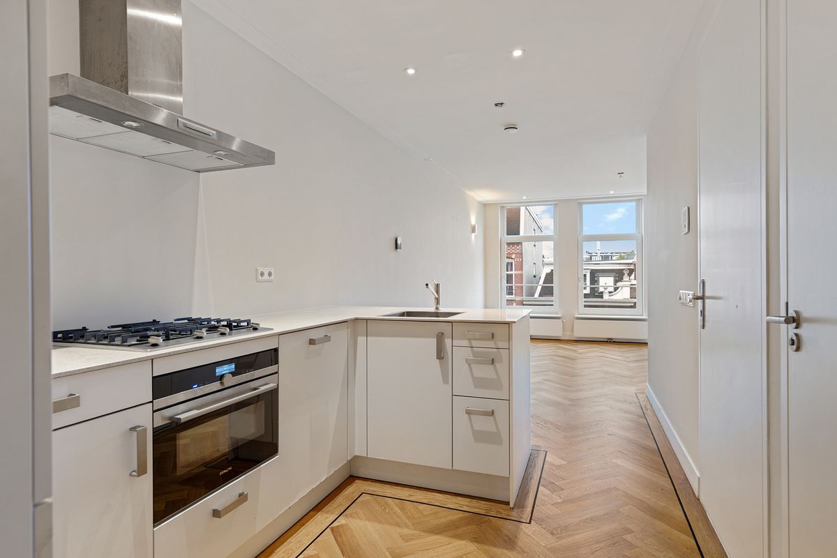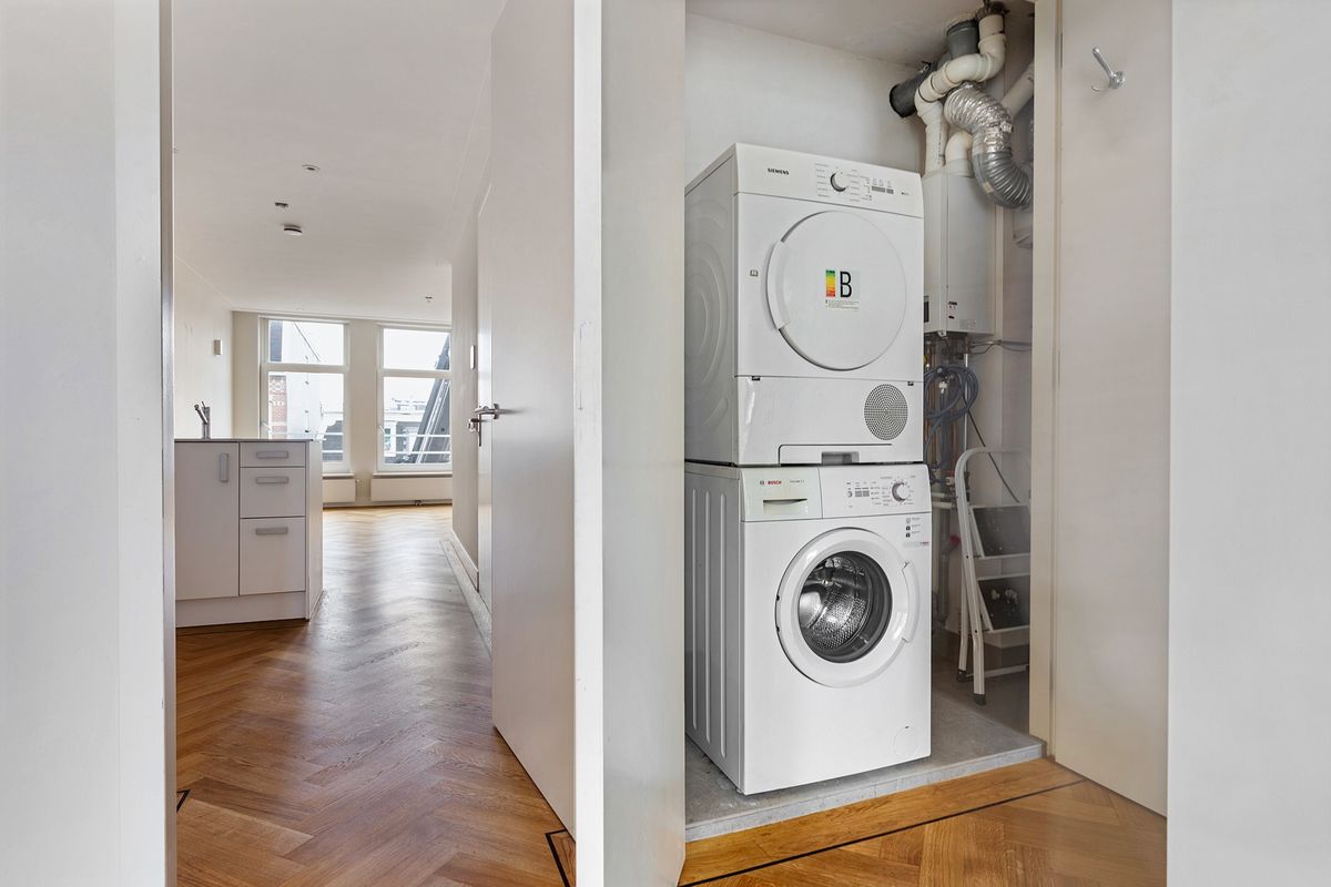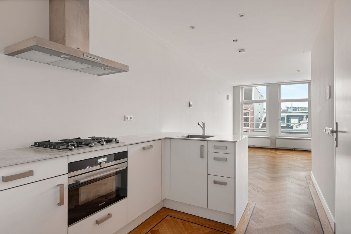 Entrance via the communal staircase to the third floor. You enter directly into the charming living room with open kitchen, beautifully lit by natural daylight and overlooking the cosy yet quiet Ter Haarstraat, adjacent to the water of the Bilderdijkkade.