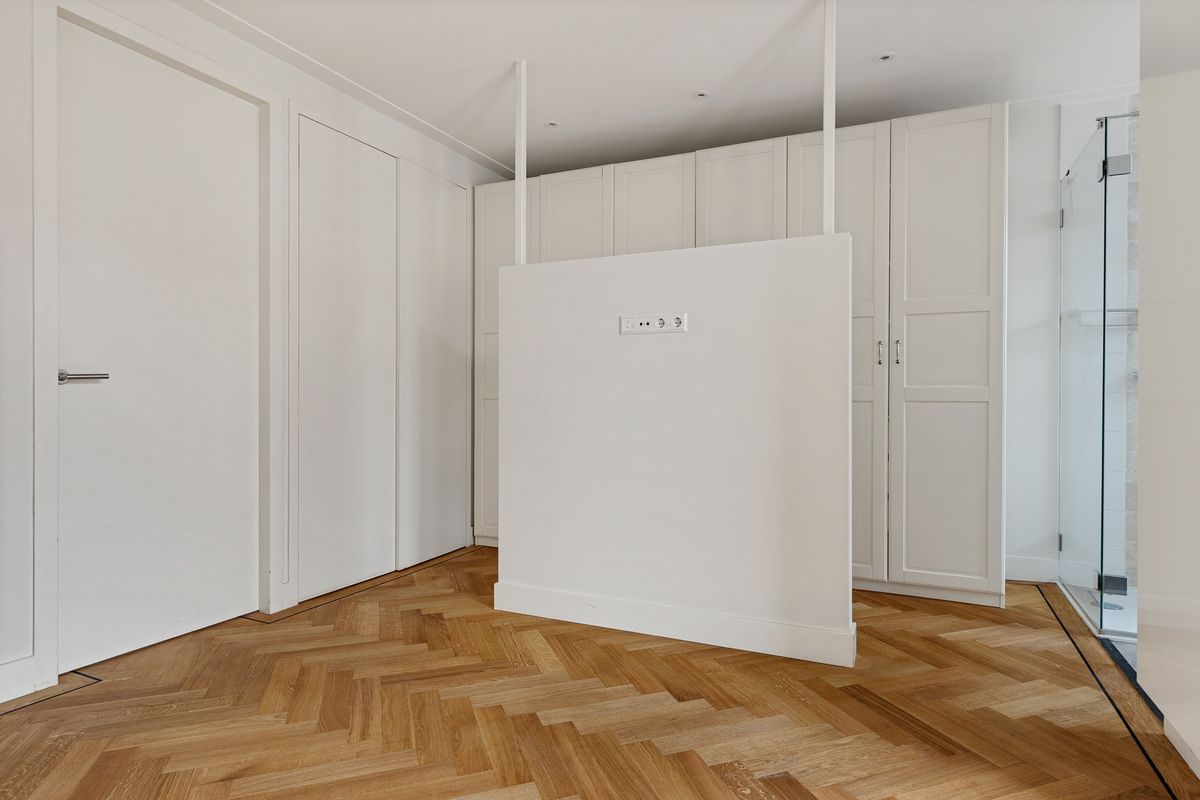 Vanuit de woonkamer is er toegang tot het toilet, washok en de slaapkamer. De ruime slaapkamer bevind zich aan de achterzijde en heeft een aparte 'walk in closet' green aan de badkamer 'ensuite' voorzien van een ruime inloopdouche, wastafel en ligbad.