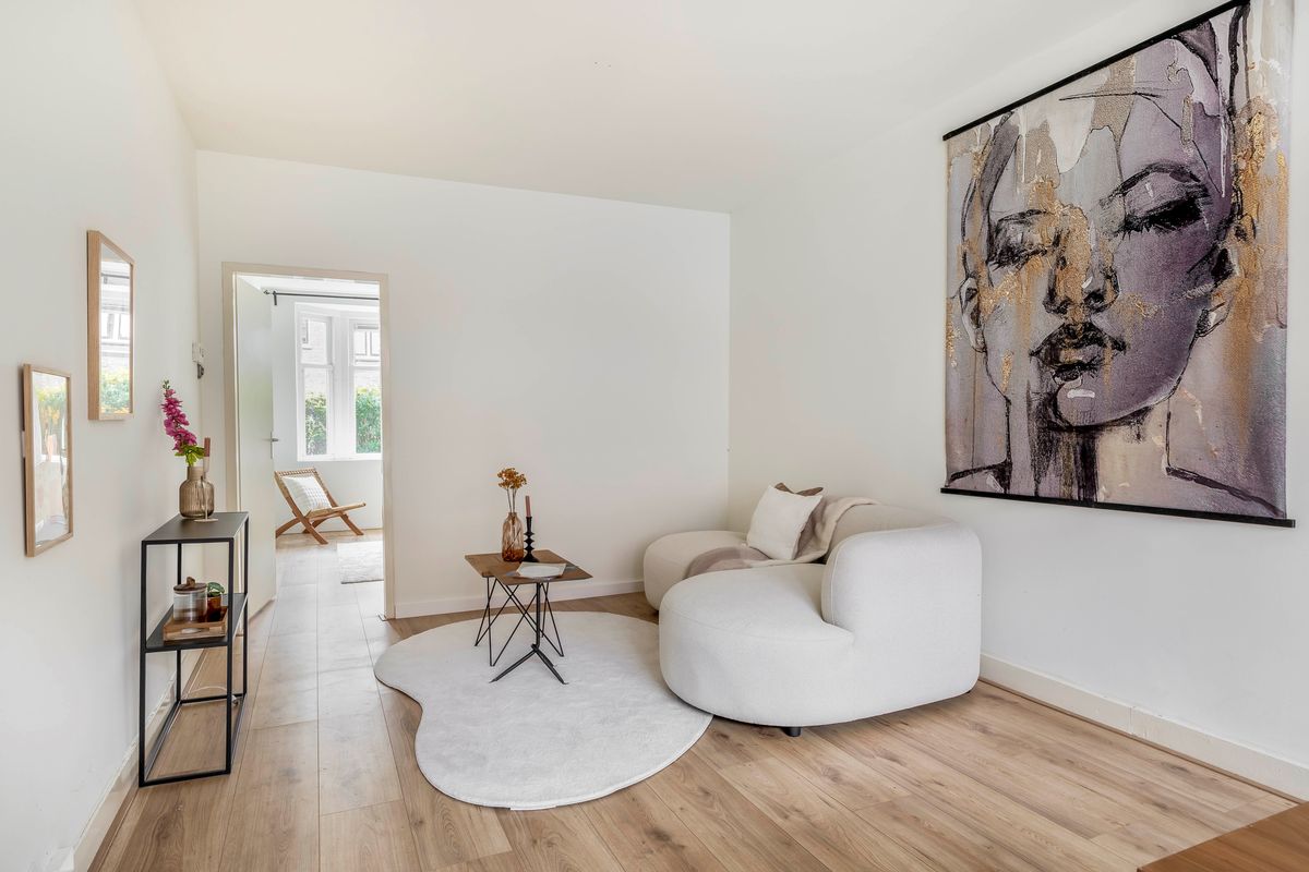 De woonkamer bevindt zich aan de achterzijde van de woning en is voorzien van een fraaie laminaatvloer, convectorput, strak stucwerk en dubbele beglazing. De woonkamer is nu 22 m2 maar eenvoudig uit te breiden door het toevoegen van de voorkamer waardoor de woonkamer maar liefst 35 m2 kan worden. Vanuit de woonkamer is een doorgang naar de half-open keuken.