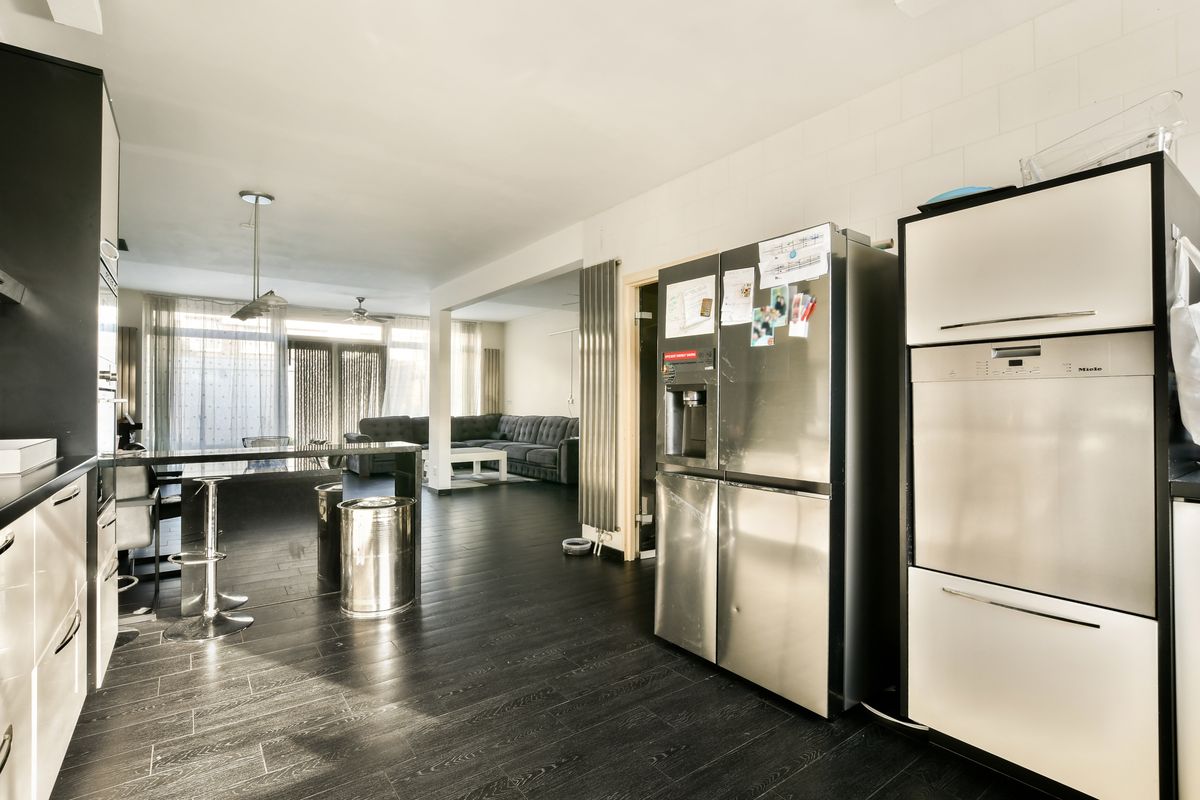 Via de verzorgde voortuin bereikt men de entree. Binnenkomst in de hal met toegang tot het toilet, de meterkast en de woonkamer. Bij binnenkomst valt direct de ruimte en de lichtinval op hetgeen direct een heel ruimtelijk gevoel geeft. De woonkamer is tuingericht en heeft een grote vensterpartij en twee openslaande deuren naar de achtertuin. De gezellige houthaard zorgt voor sfeer en warmte. De open keuken is aan de voorzijde gerealiseerd en uitgevoerd in een hoekopstelling. De keuken is voorzien van diverse inbouwapparatuur zoals een vaatwasser op werkhoogte, magnetron, combi-oven, tepanyakiplaat, inductie kookplaat, inductie wokplaat en een Amerikaanse koelkast. De liefhebber van koken heeft dus alles tot zijn beschikking om uitgebreid te koken, en meerdere afzuigschouwen zorgen er voor dat alle geuren snel worden afgezogen.