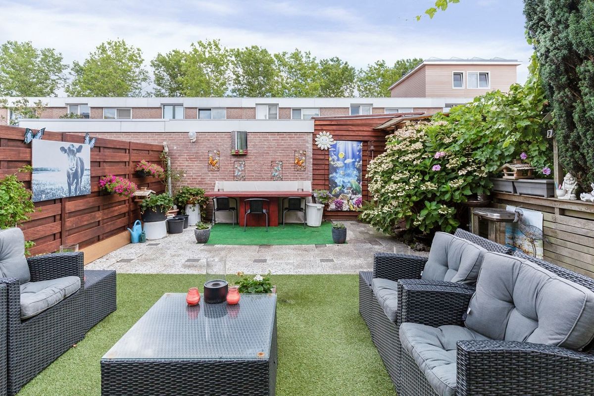 Tuin: De woning beschikt over zowel een voor- als achtertuin. De achtertuin is diep en prettig op de zon gelegen. De tuin beschikt over bestrating, plantenborders, terras, vrijstaande stenen berging, houten berging en een achterom.