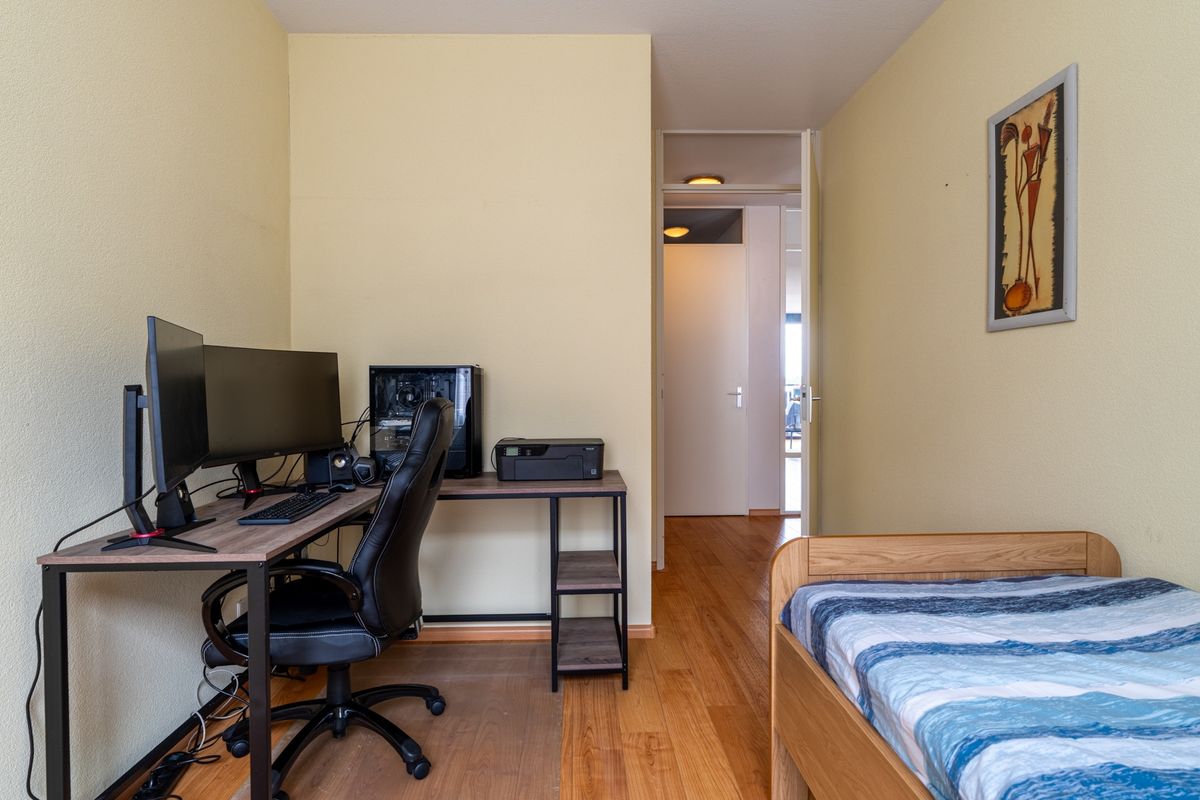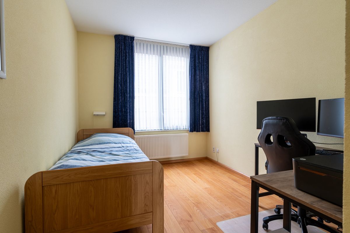 Het appartement heeft twee slaapkamers. De grootste is ruim genoeg voor een tweepersoonsbed en kasten. De tweede kamer is perfect als logeerkamer, kantoor of hobbyruimte. De badkamer is netjes afgewerkt met douche en wastafelmeubel. Ook is er een apart toilet in de hal en een berging met cv-installatie, wasmachine en droger aansluiting en extra opslagruimte.