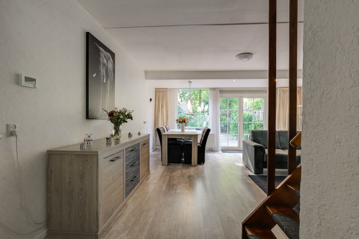 Bij binnenkomst valt direct de lichtinval op. De woonkamer strekt zich uit over de volle breedte van de woning, met openslaande deuren naar de achtertuin. Hier geniet je van rust, groen en privacy – een plek waar vogels de boventoon voeren in plaats van verkeer. De tuin ligt gunstig voor de middag- en avondzon en biedt ruimte genoeg voor een loungeset of barbecuehoek.