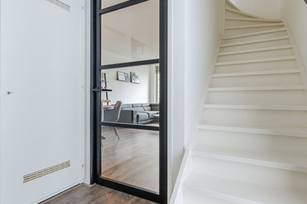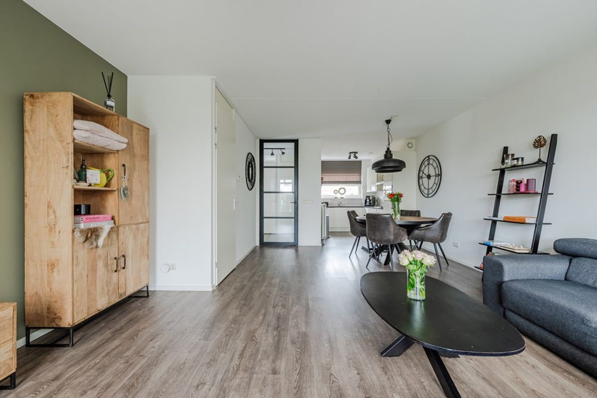 Je komt binnen in een lichte hal (4 m²) met meterkast, CV-kast en modern toilet met fonteintje. Vanuit hier stap je de ruime woonkamer (28 m²) in, een fijne, open leefruimte met veel lichtinval en een laminaatvloer die voor een warme uitstraling zorgt.